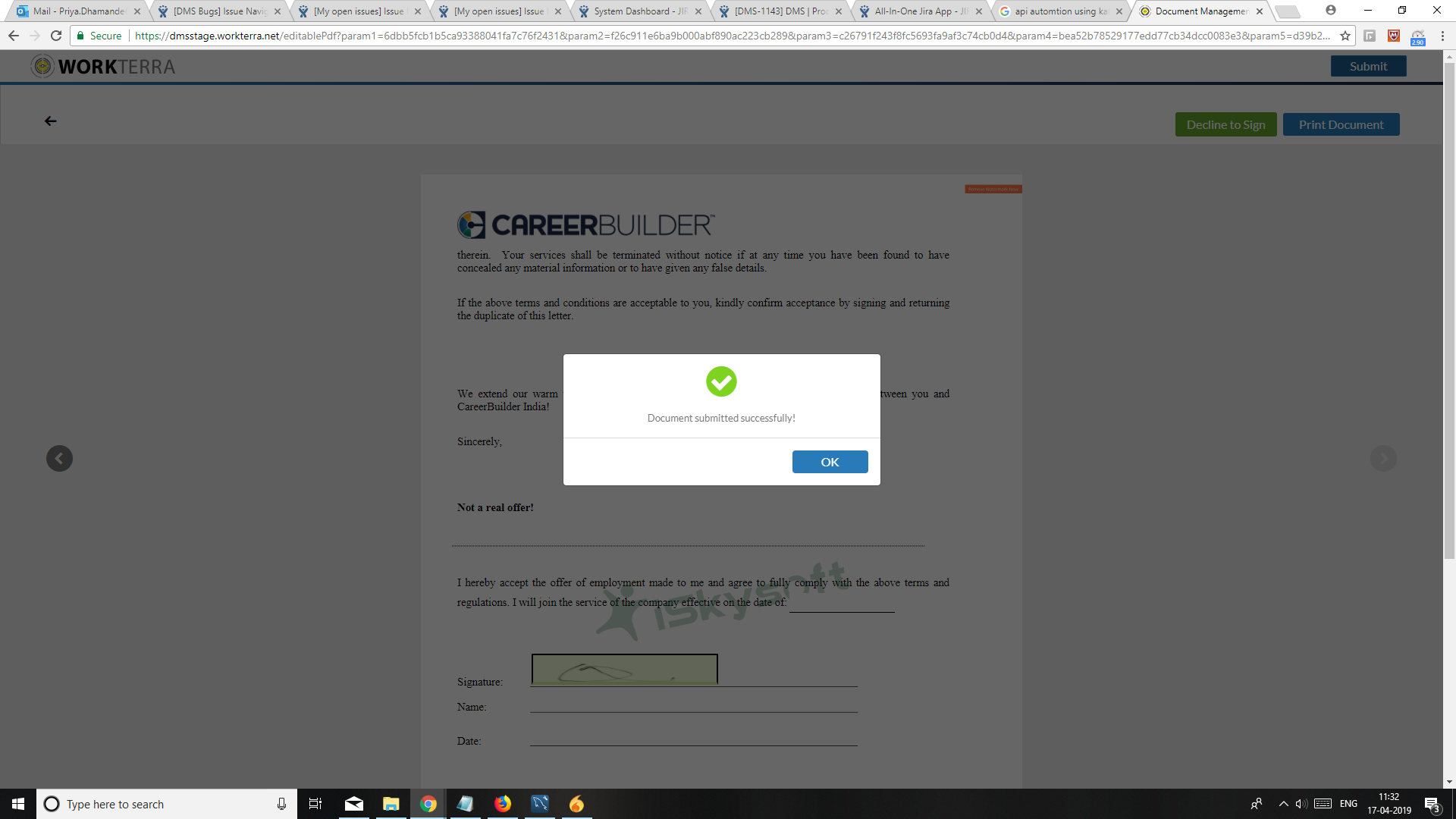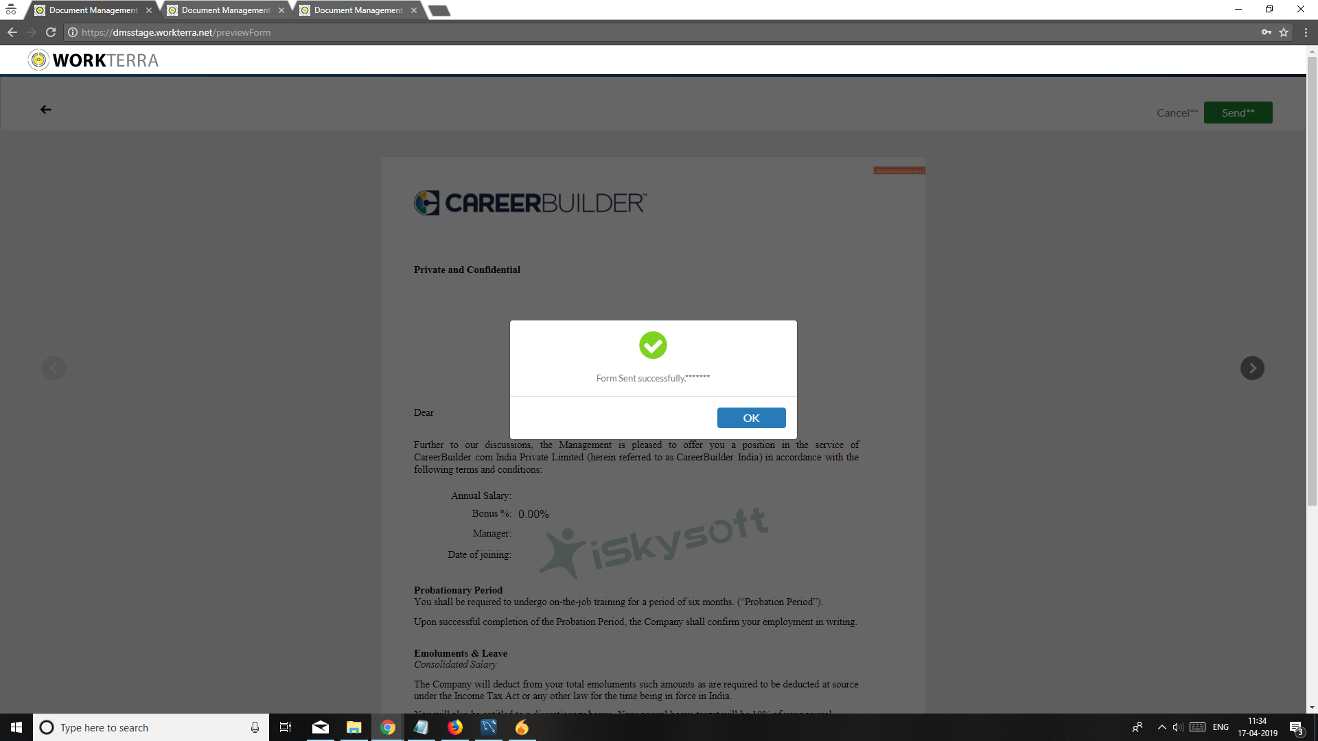 1. Email > Link > Review and Sign HTML Doc > Blank popup appearing