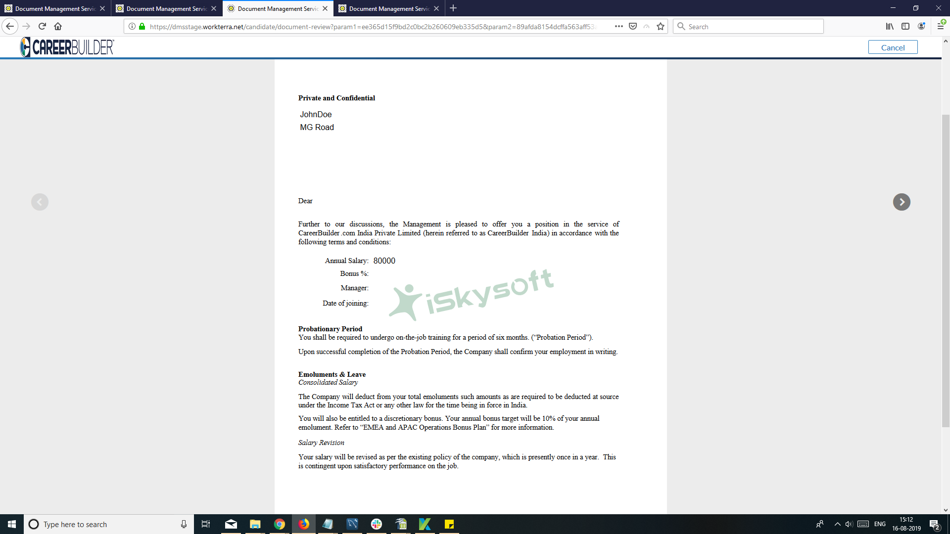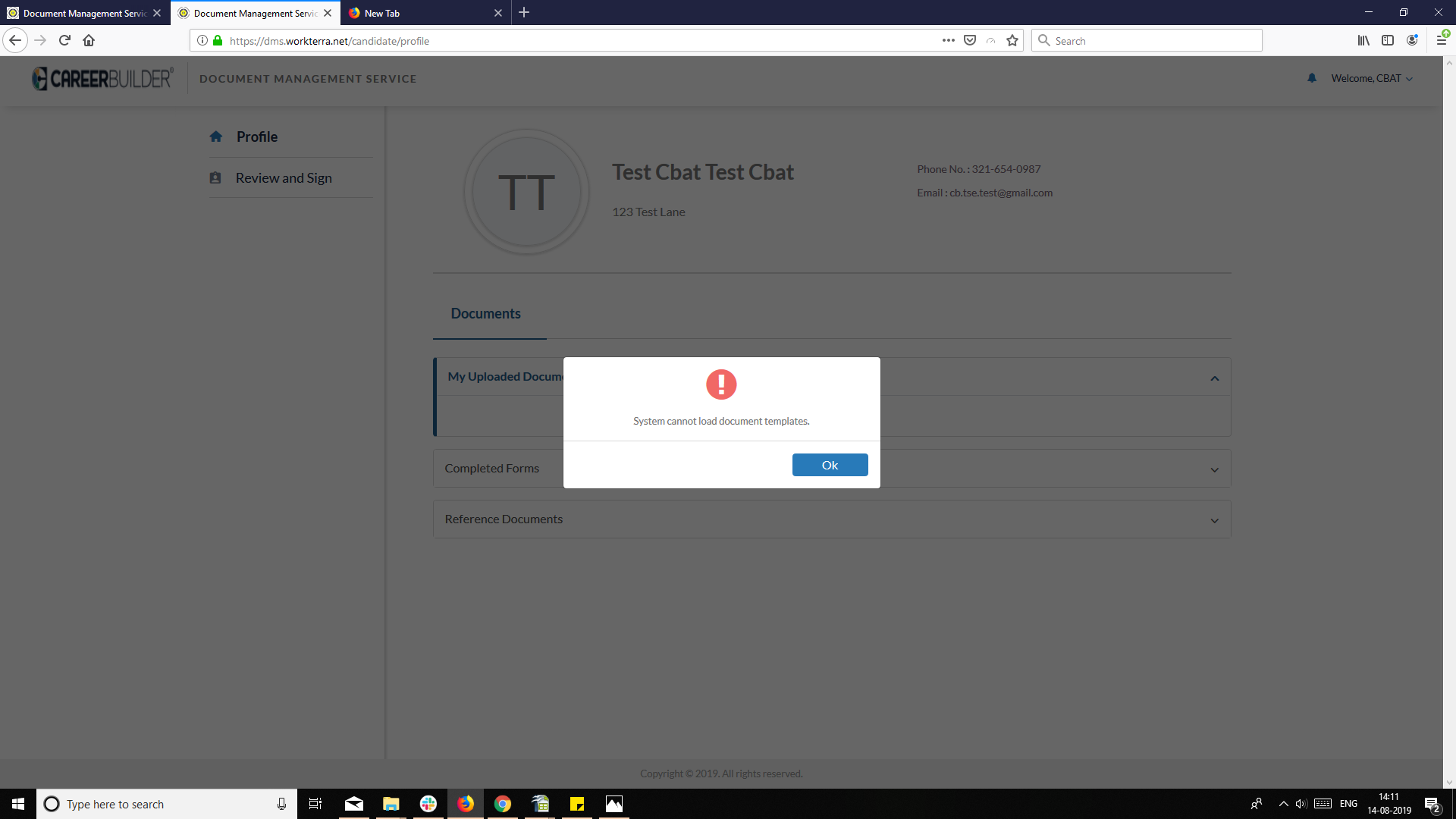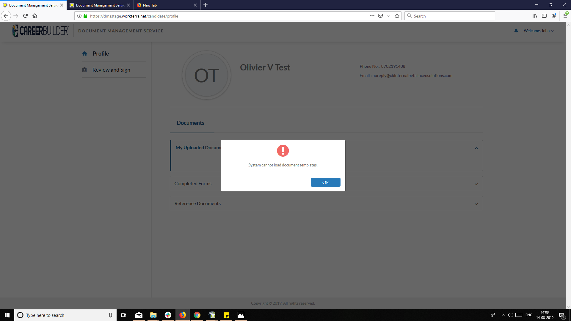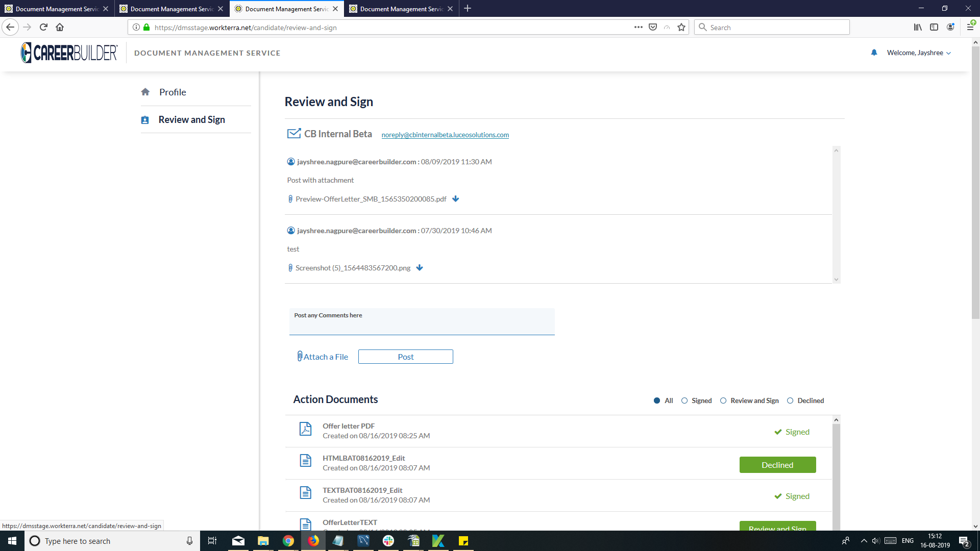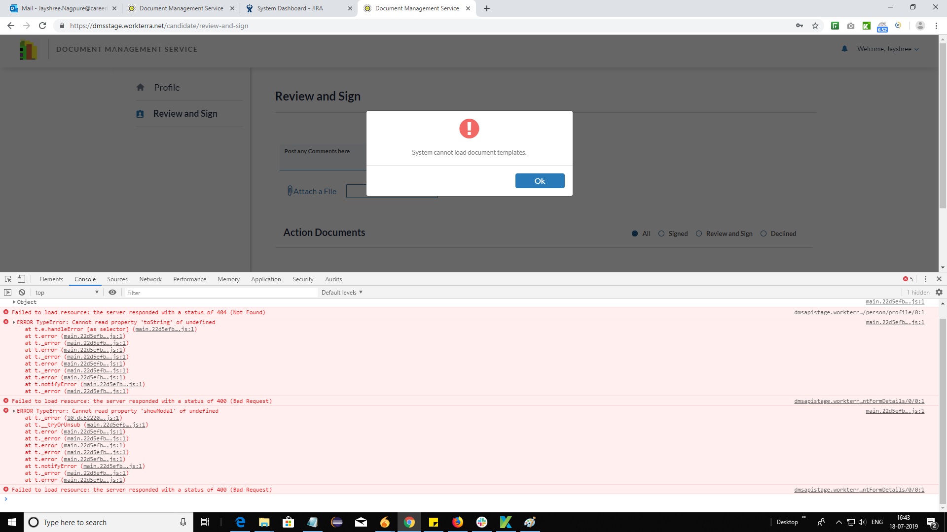 NOTE : Review and sign is working fine, when candidate receives email and click on link and traverse to review and sign page.