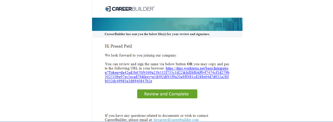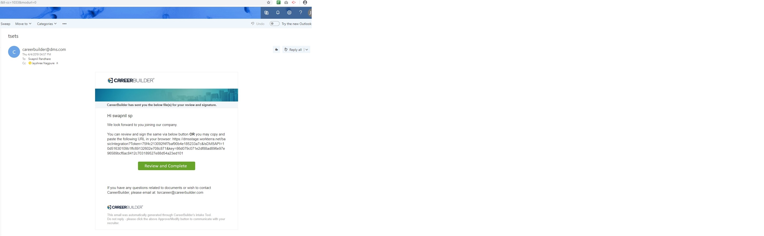 4. Whne Employee receives mail, along with candidate First name the tage is appearing