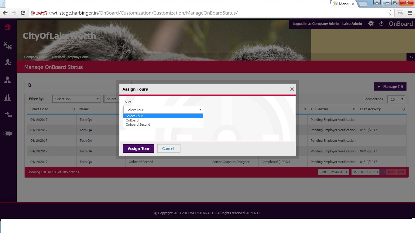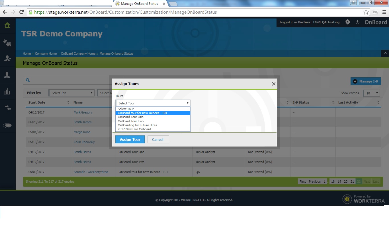 4] Click on "Assign Tours" link displaying after mouse hovering of any record.