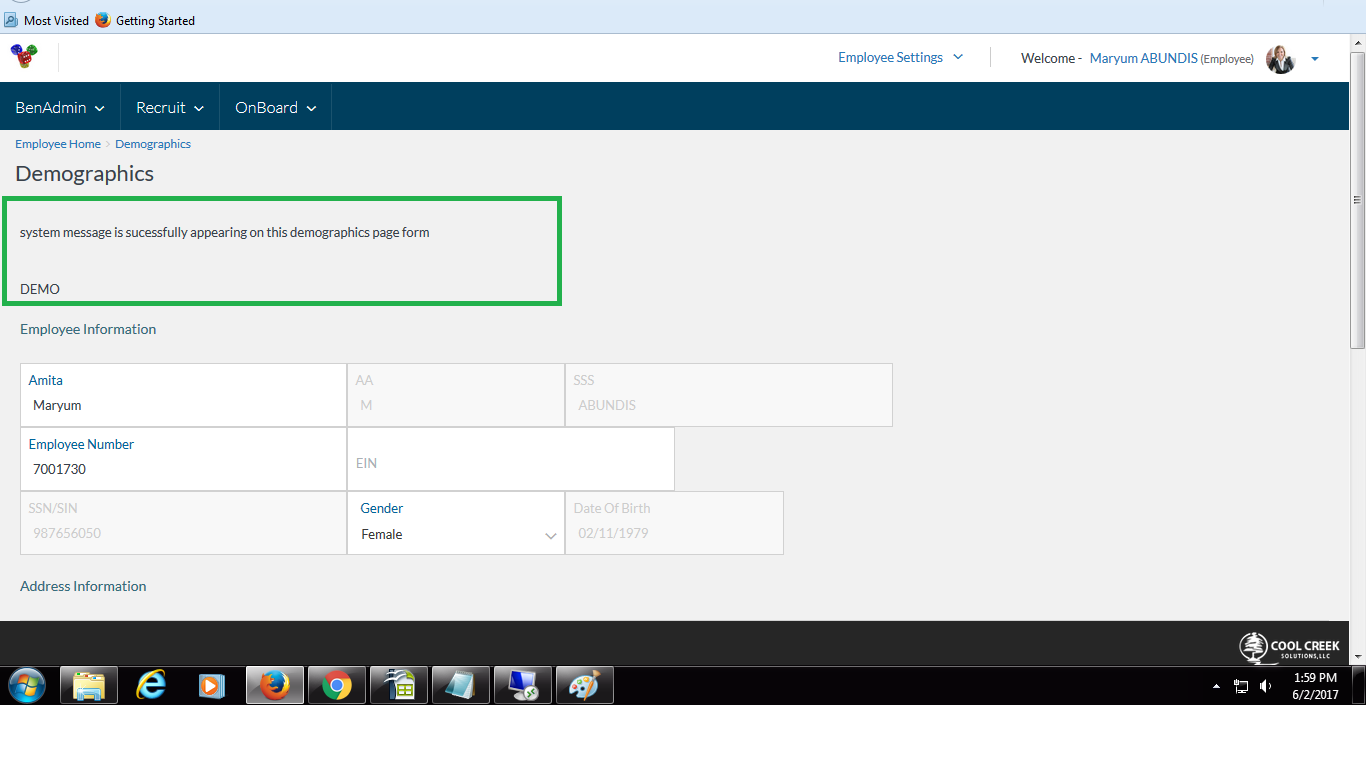 Save system message in form builder -> Demographics -> Design system Message -> Select Role as Company admin, Employee -> save the system messages