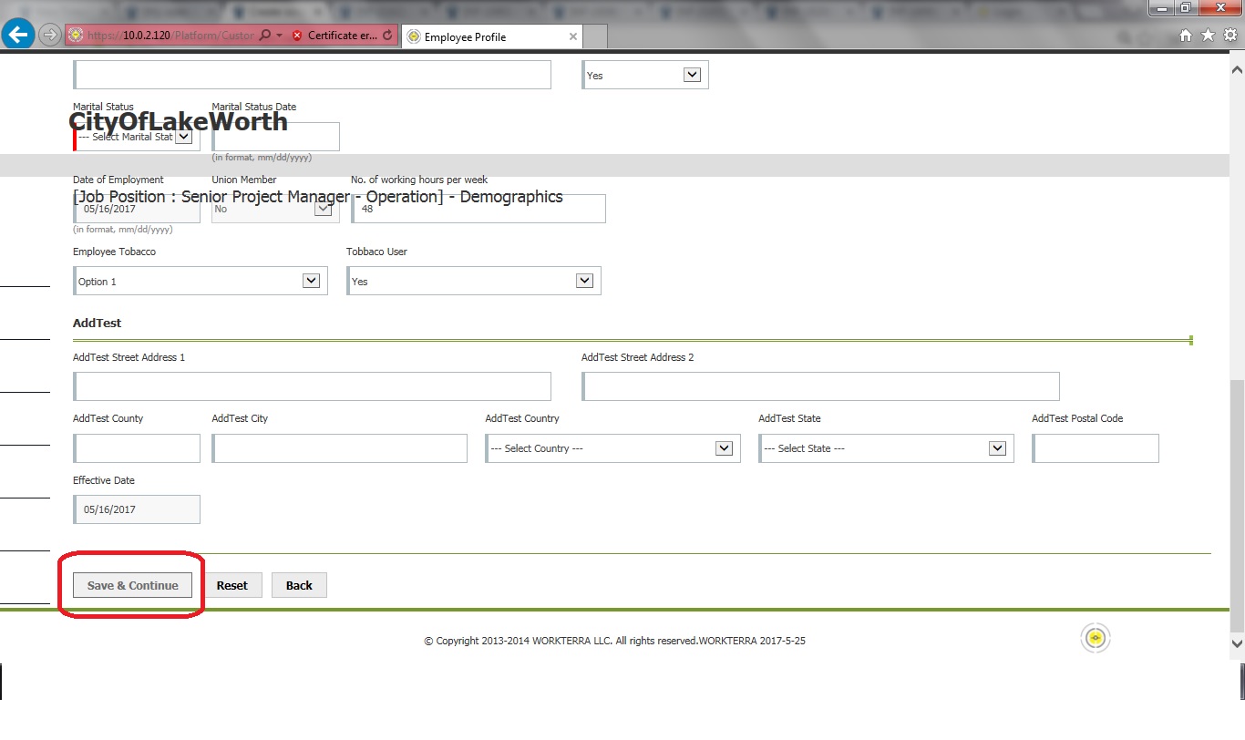 "Save & Continue" button is disabled and user needs to use "Back" option in order to make it enable.