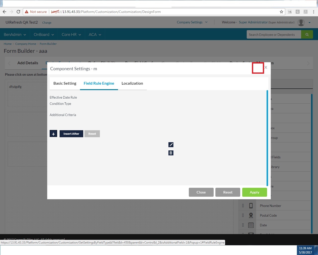 Form builder > Drag component > Seeings > Popup > Close button hit area is large
