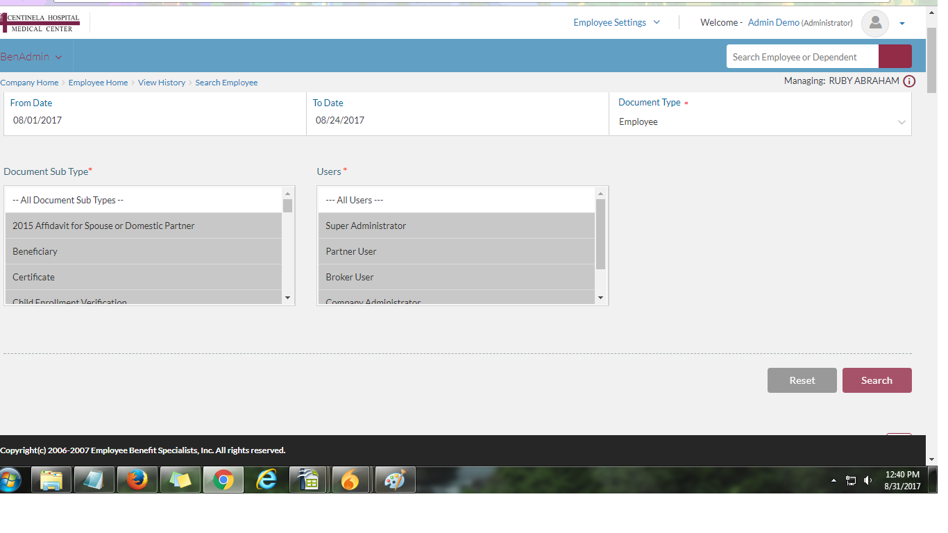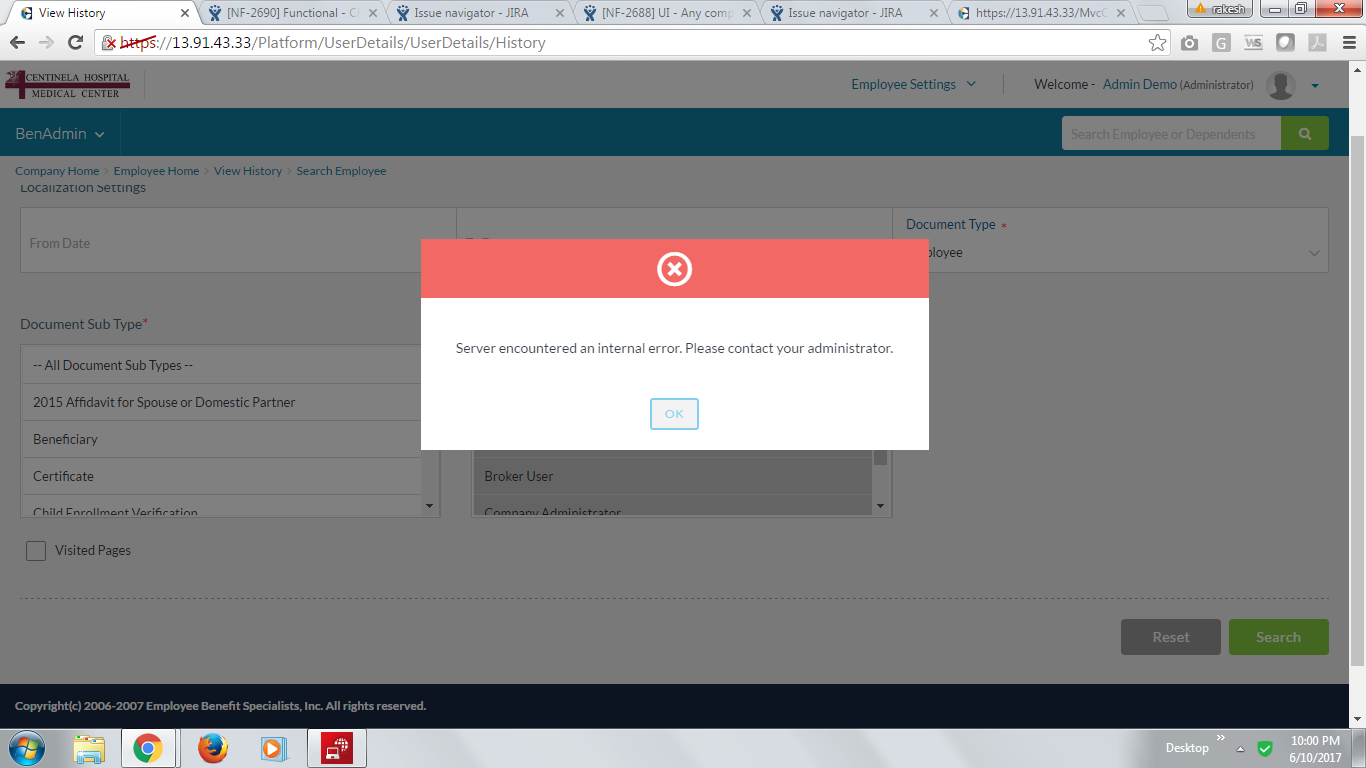 Functional - CHMC - Admin login - View History - Server error on selecting all value