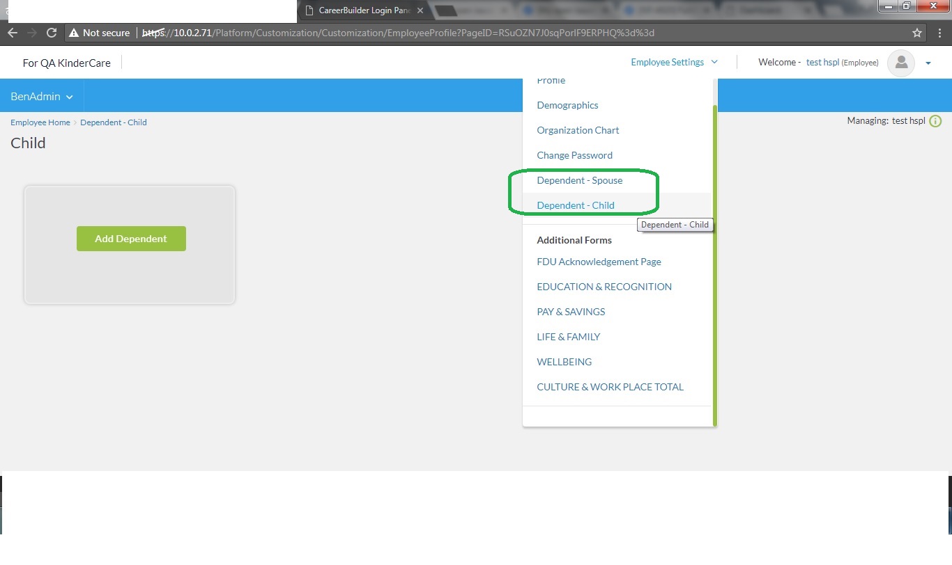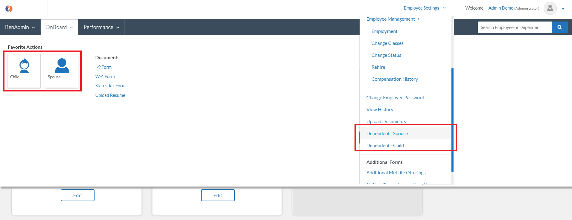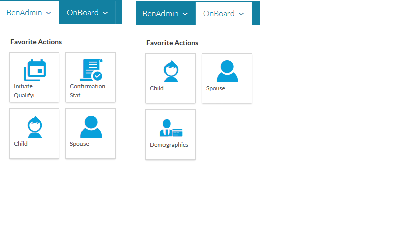 - D673 Diana Navigation - Onboard UI Refresh - 7001730 - Password@2 Employee Low UI Manage Spouse and Manage Child appear under both BenAdmin and Onboard since it can apply to both modules. List "Manage Spouse" and "Manage Child" to be listed under "Employee Settings" dropdown instead.