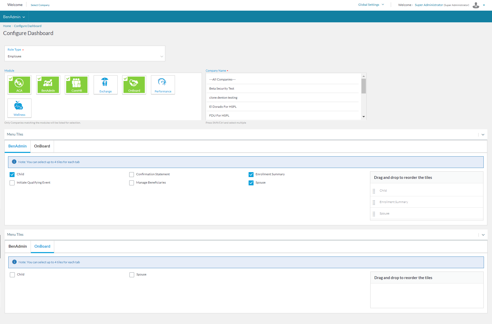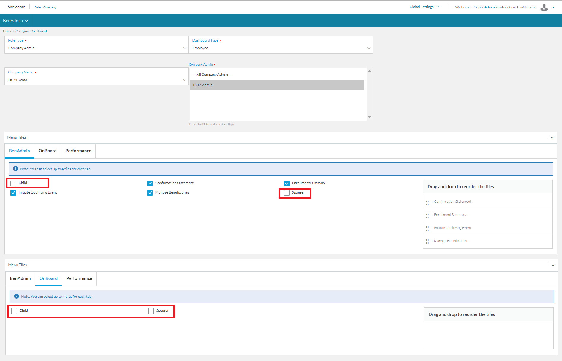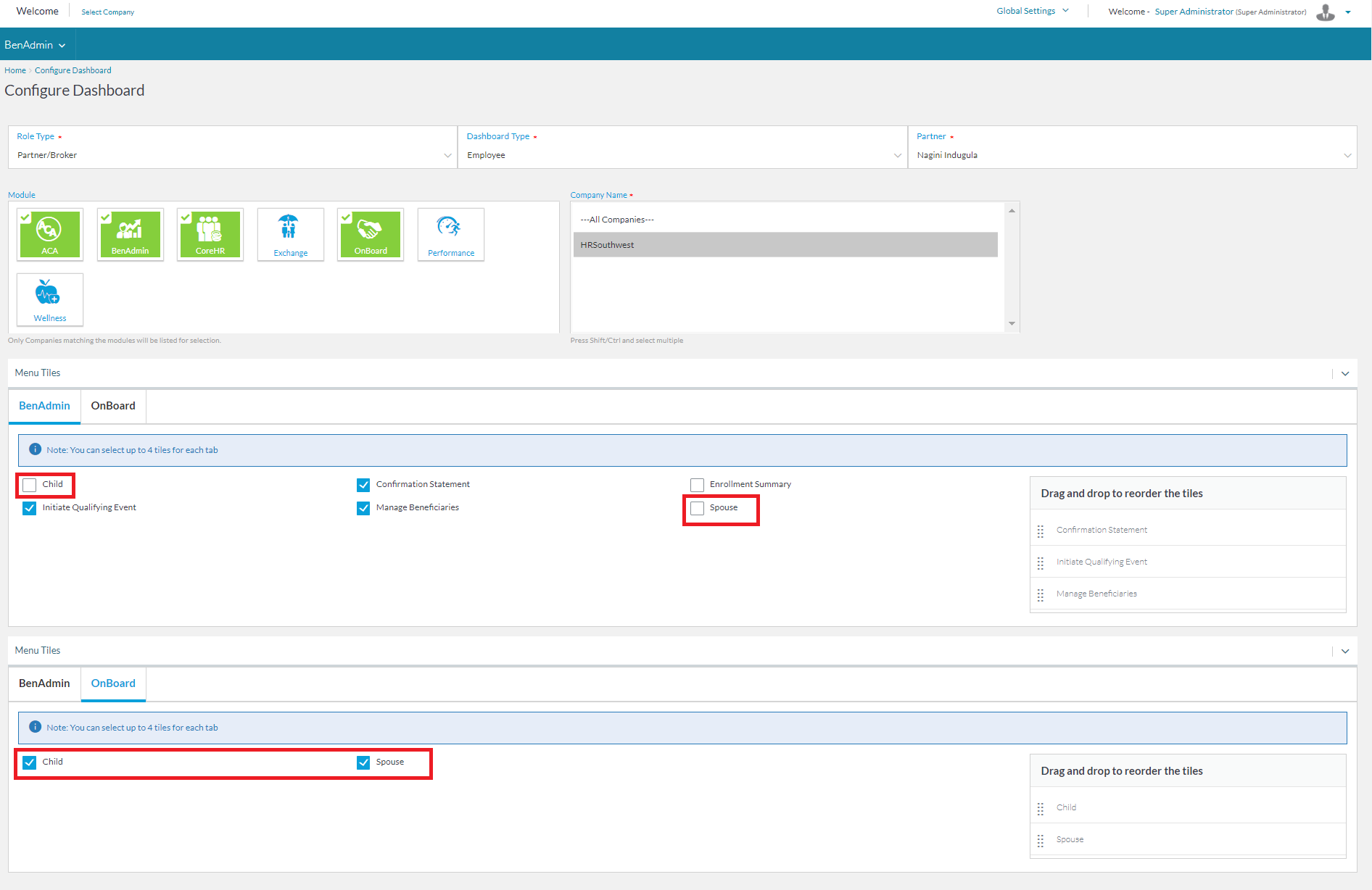 - D673 Diana Navigation - Onboard UI Refresh - 7001730 - Password@2 Employee Low UI Manage Spouse and Manage Child appear under both BenAdmin and Onboard since it can apply to both modules. List "Manage Spouse" and "Manage Child" to be listed under "Employee Settings" dropdown instead.