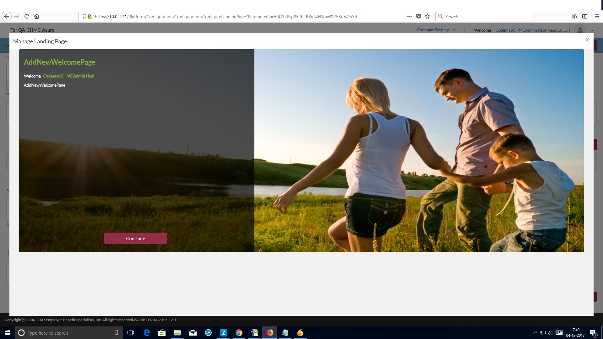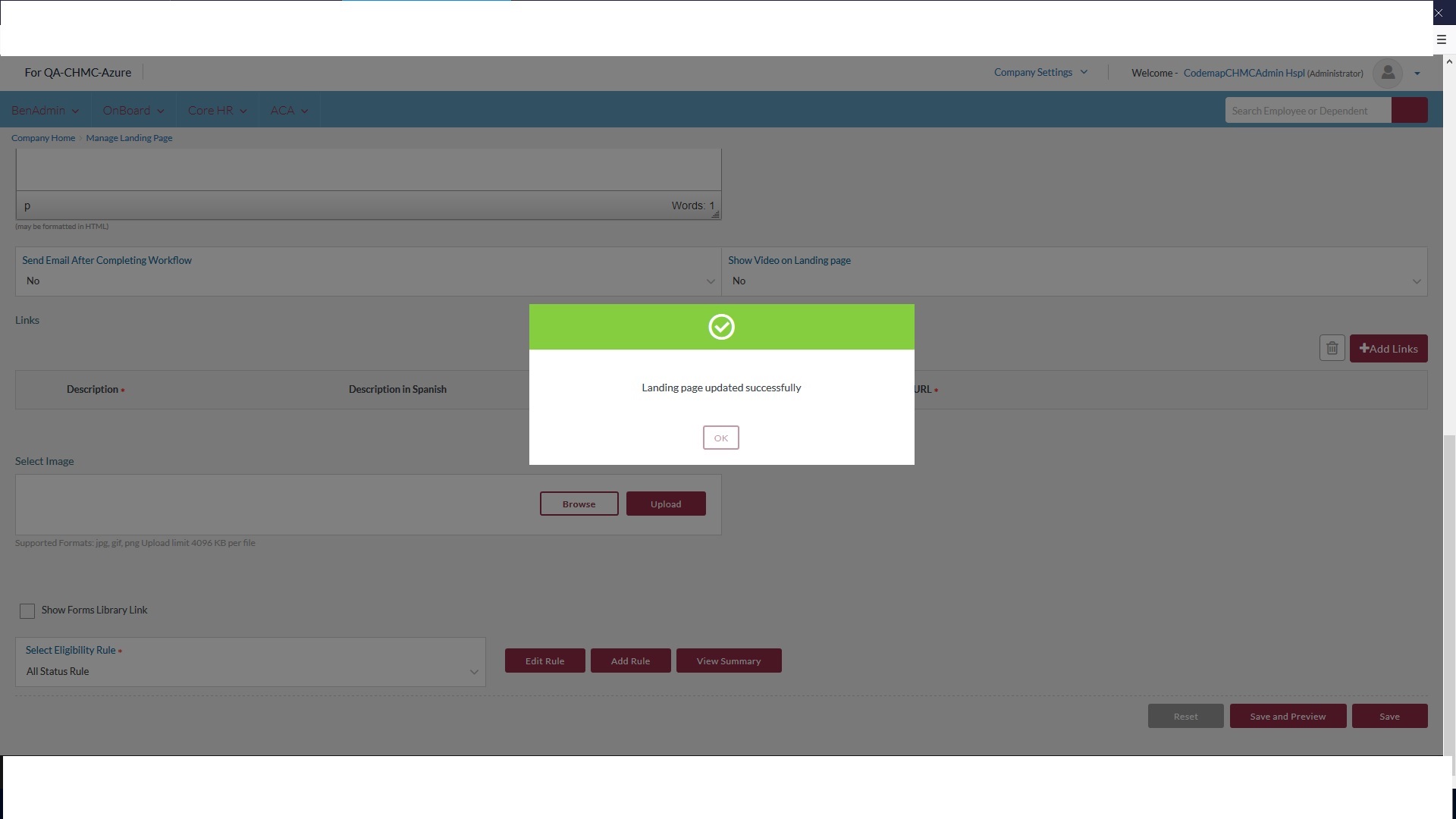 Functional - Any Company - Admin Login - BenAdmin -Manage welcome page - Change