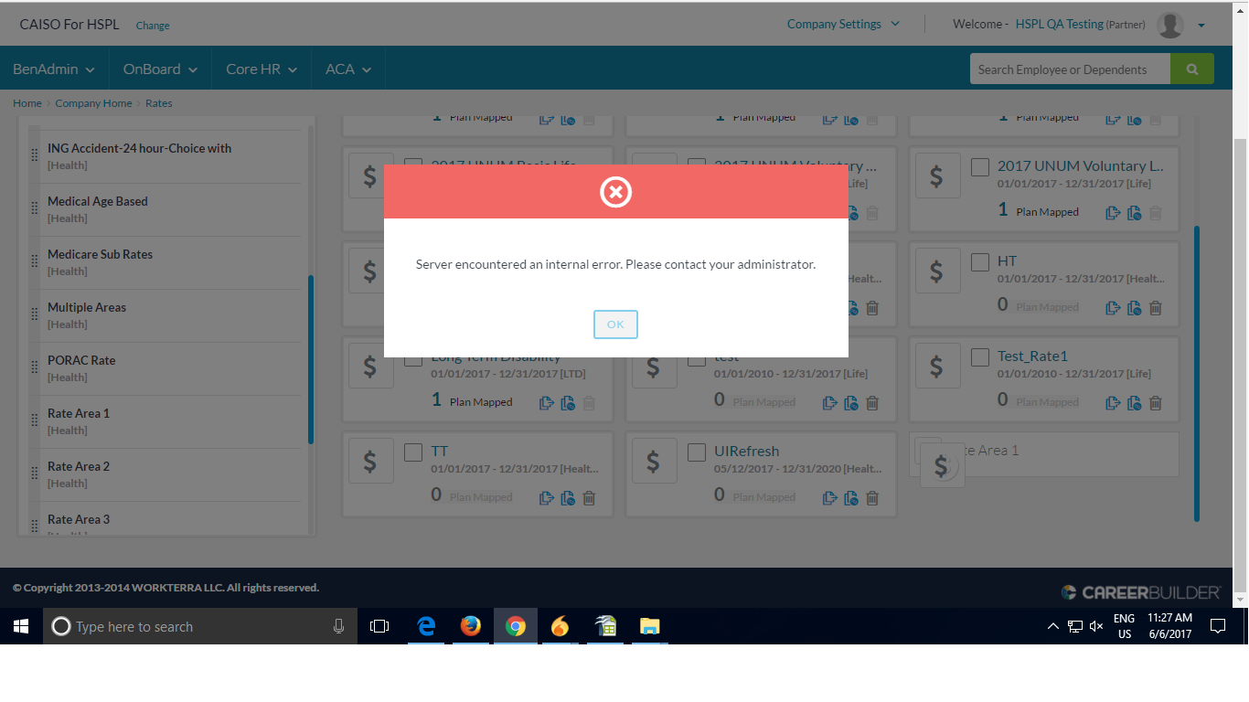 Actual result : Global rates cloning on Company giving SERVER ERROR