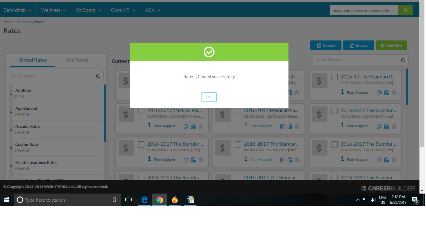 Expected Result : Global rates cloning on Company should not give SERVER ERROR