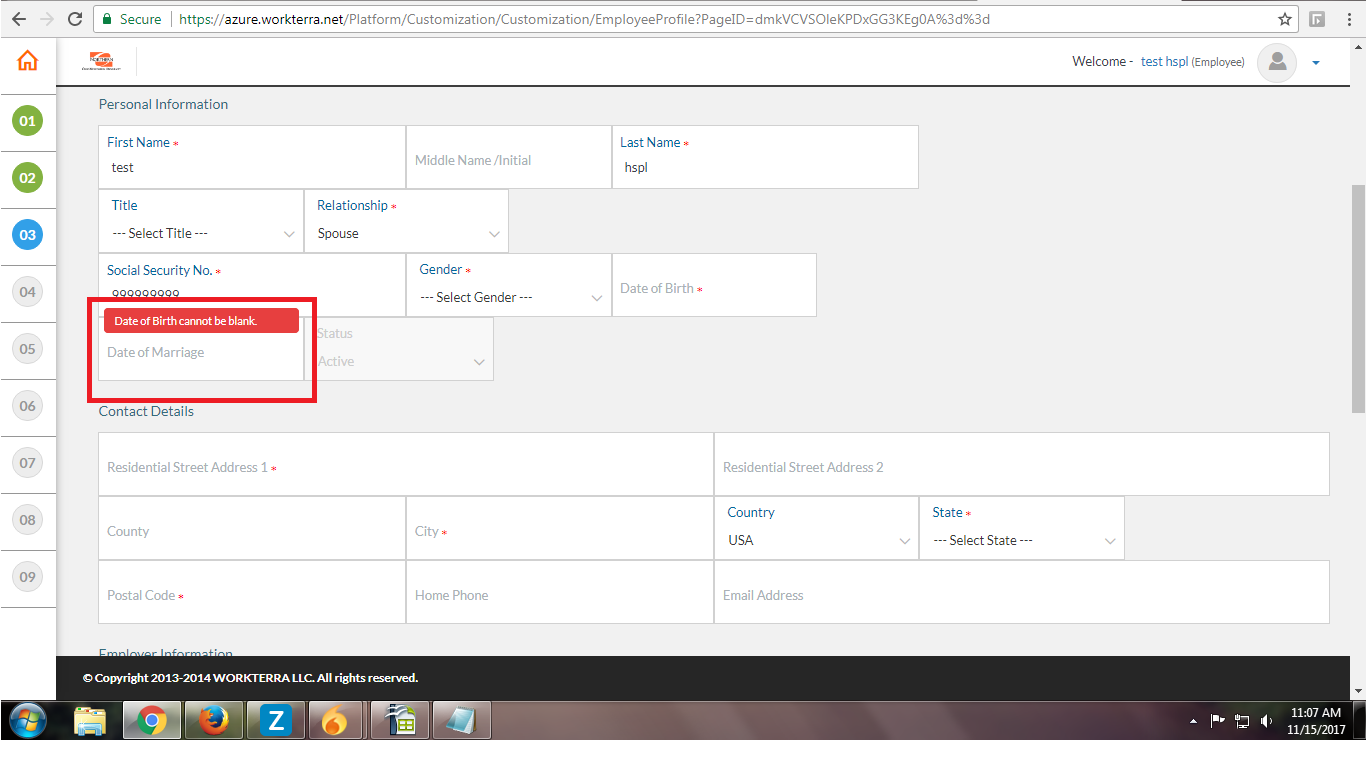 NF-5809 Codemap - Spouse - DOB and Marriage date, Disability date and Employment date comparison issue