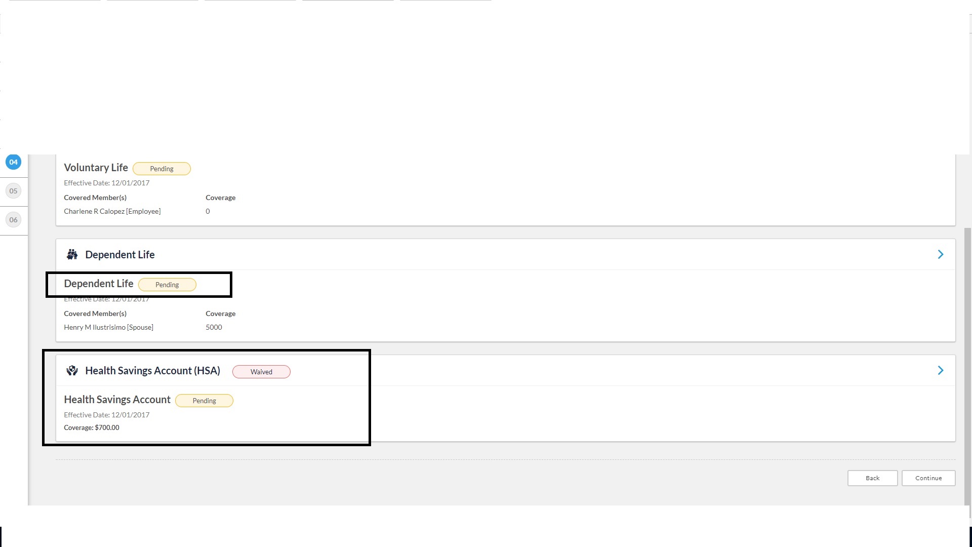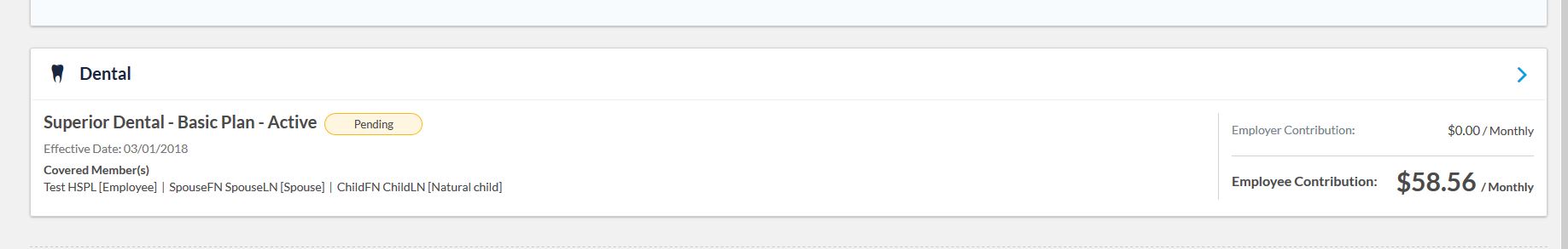 - Show a text of ‘Enrollment Pending Approval’ beside the Coverage amount