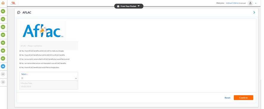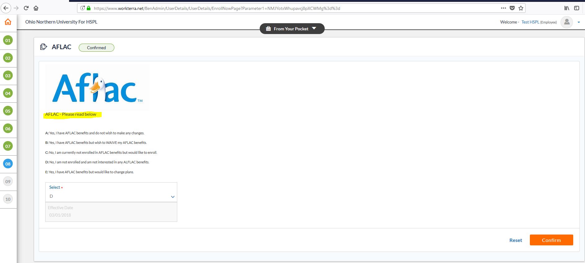 Comments: For ‘AFLAC, there is one line ‘AFLAC – Please read below’ that is grey text on grey background. Can please check what field is in this format and update it as it is not legible? If this is open text customized by client, then please ignore.