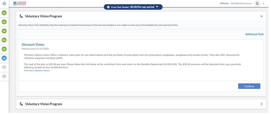 Comments: For Voluntary Vision Program, after I click on ‘Confirm’, the plan collapses to show the next plan but there is no reflection of the ‘Confirm’ button on collapsed. Can show the button?