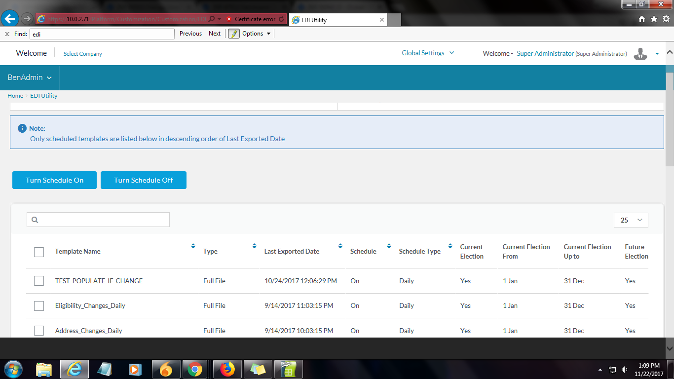 NF-3600 UI - Any Company - Partner Login - Global Settings - Import/Export - EDI Utility - Change