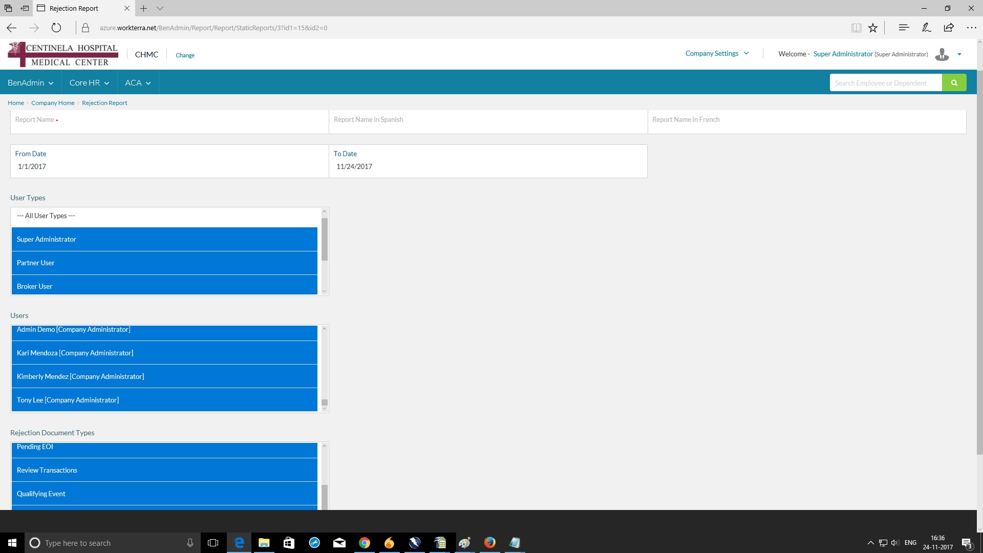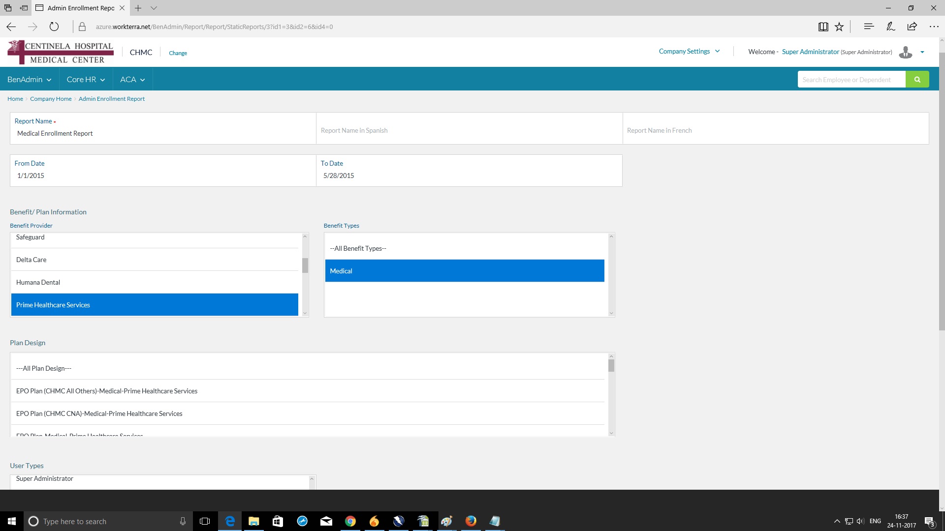 Static report -> Admin Enrollment report