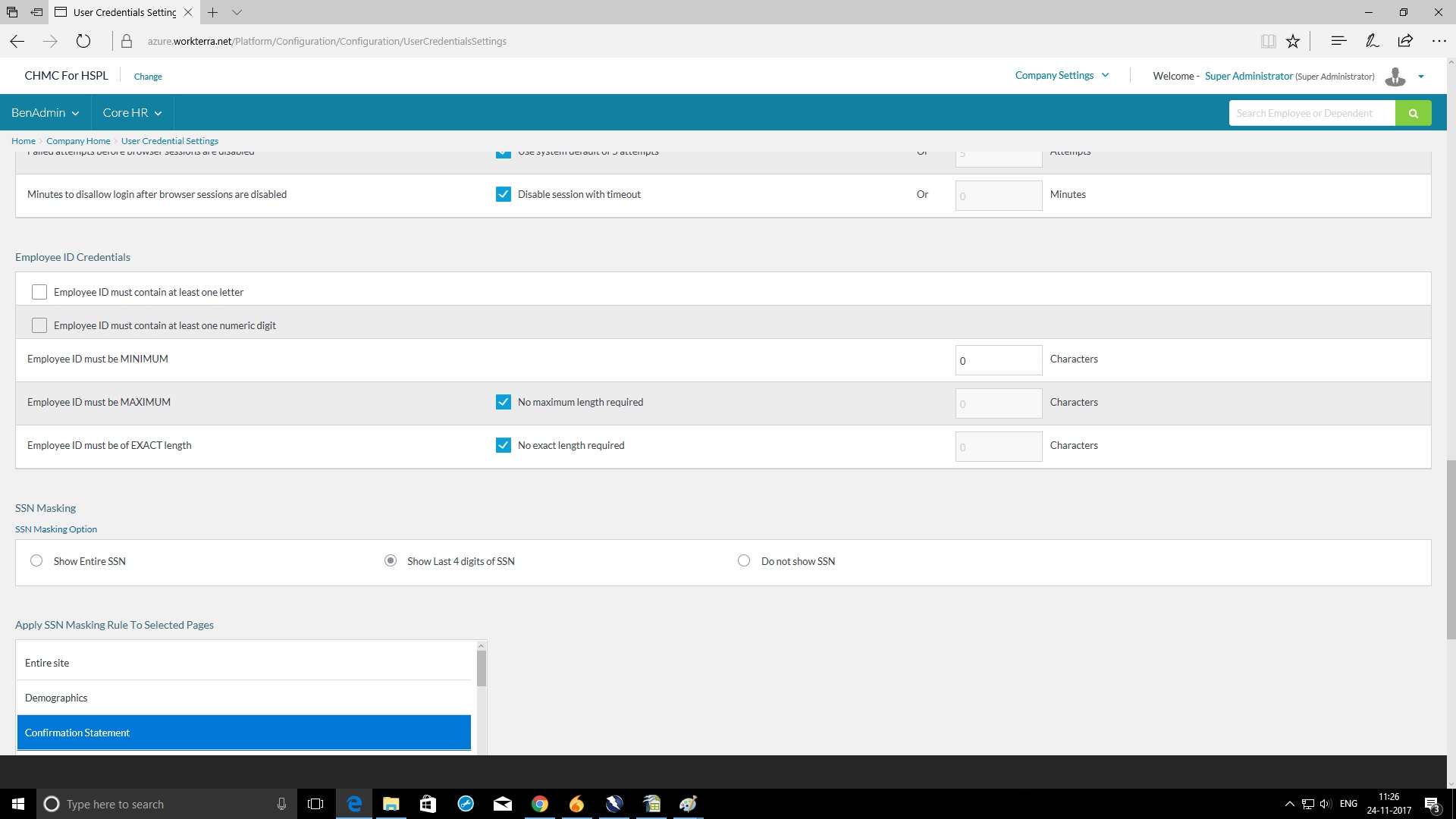 3)Ben Admin -> Select User credentials