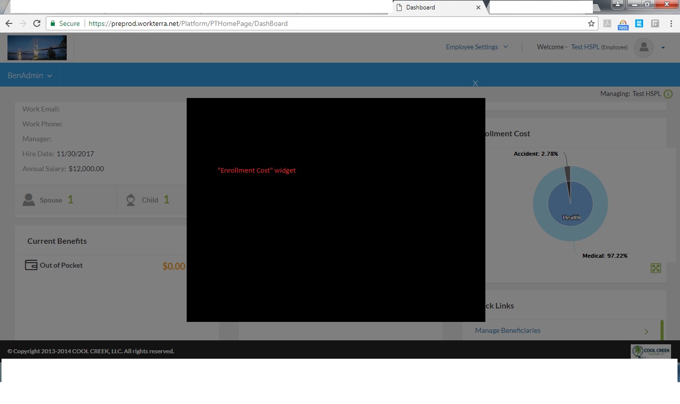 Massman Construction>"Enrollment Cost" widget displaying in black color and not getting closed on expanding
