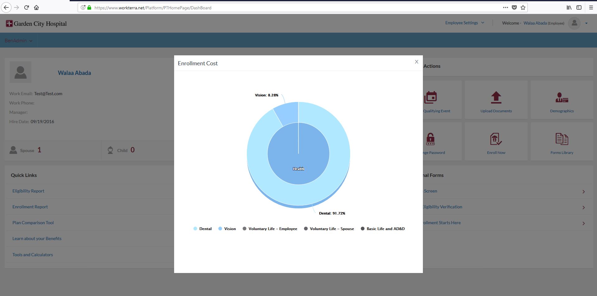 "Enrollment Cost" widget should display properly and should get closed after clicking on Close (X) icon.