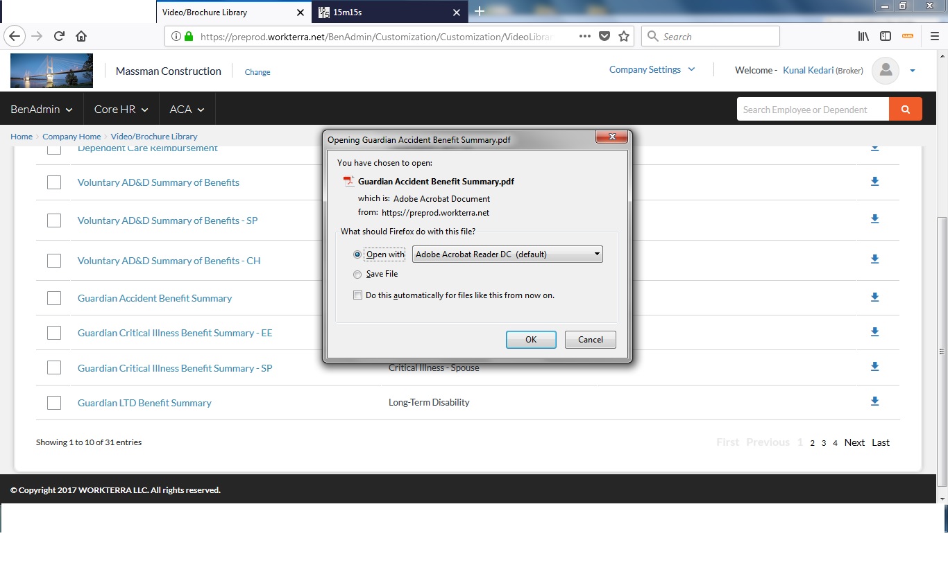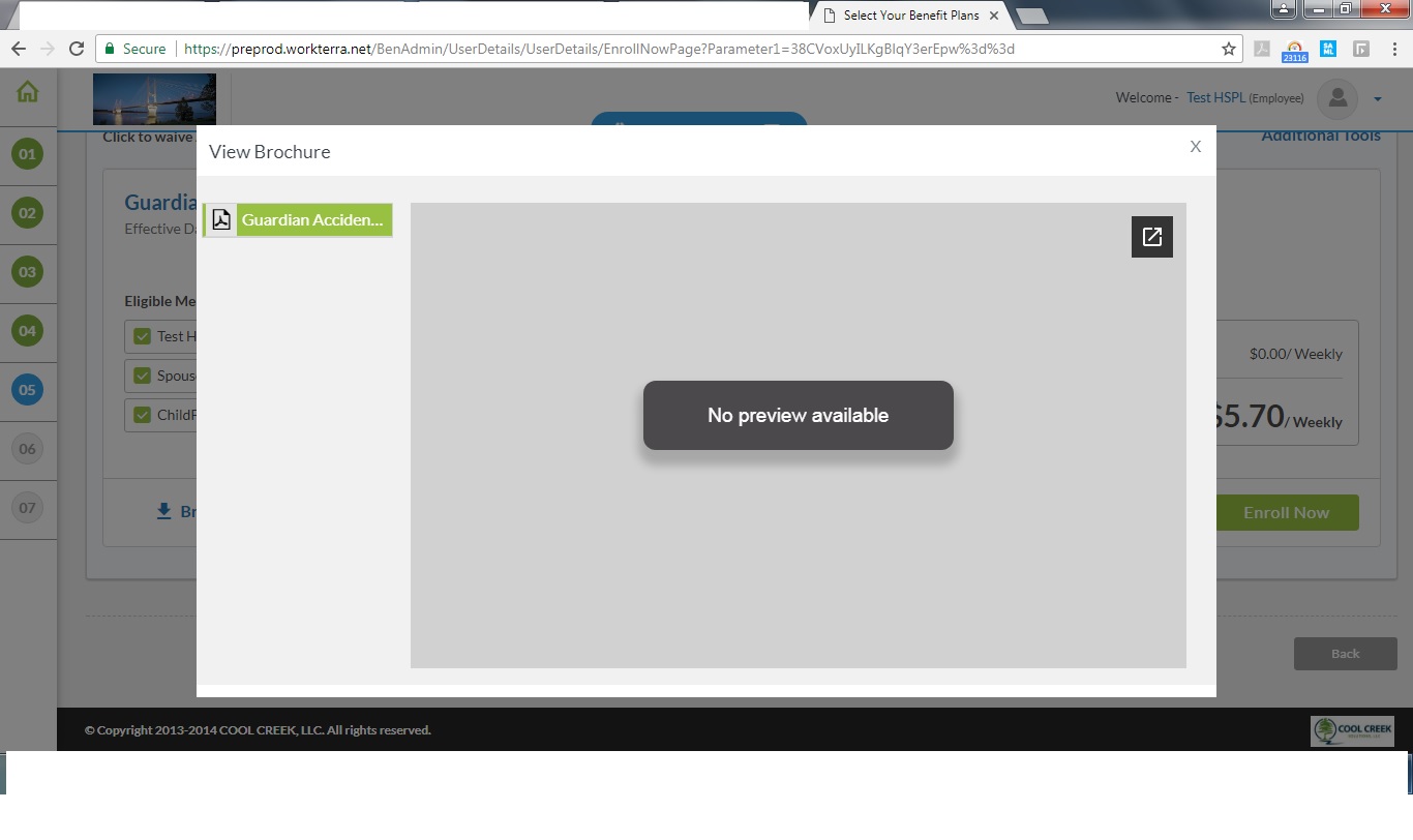 2] Navigate to "Enroll Now" page, click in "Brochure" link for "Guardian Accident" plan.