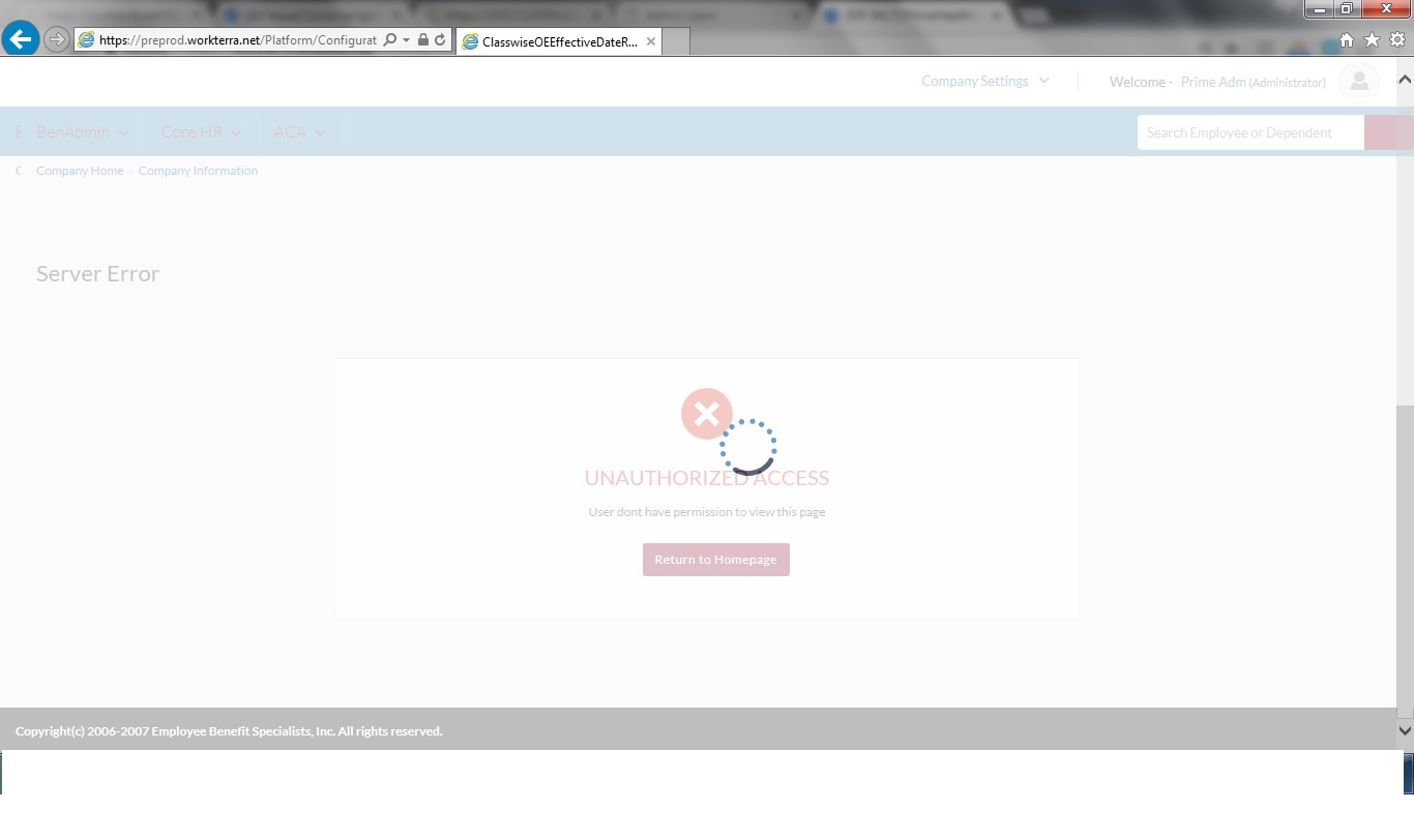 Unauthorized Access error.
