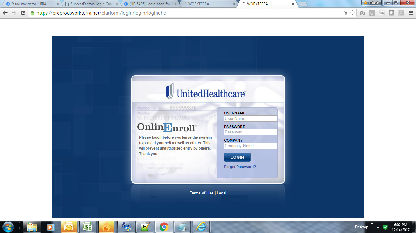 Login page for UMR not displaying Terms of Use | Legal link UHC login URL