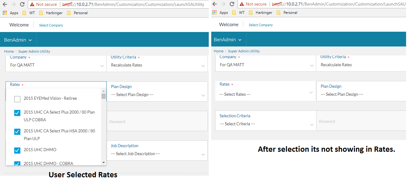 3) Select option like Recalculate Rate,Recalculate Credit,Recalculate Health Tier policy no, Assign default value and observe that Recalculate Button is not enabled.