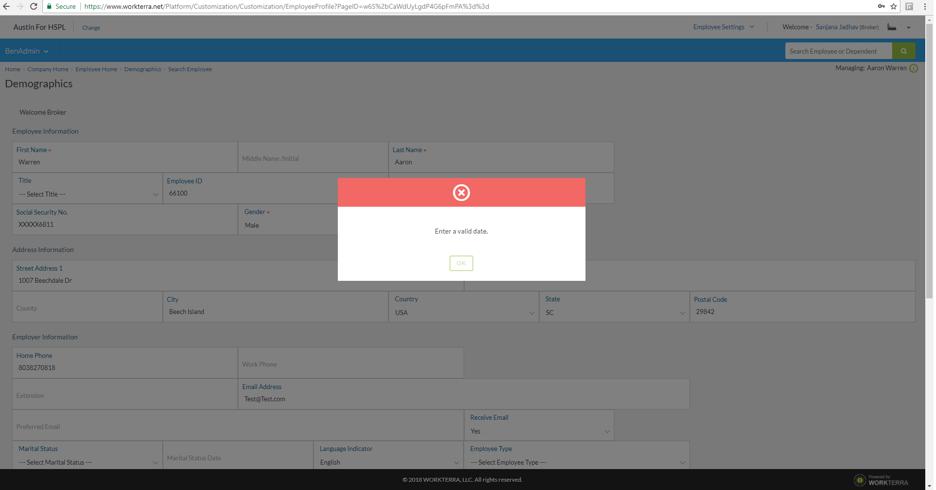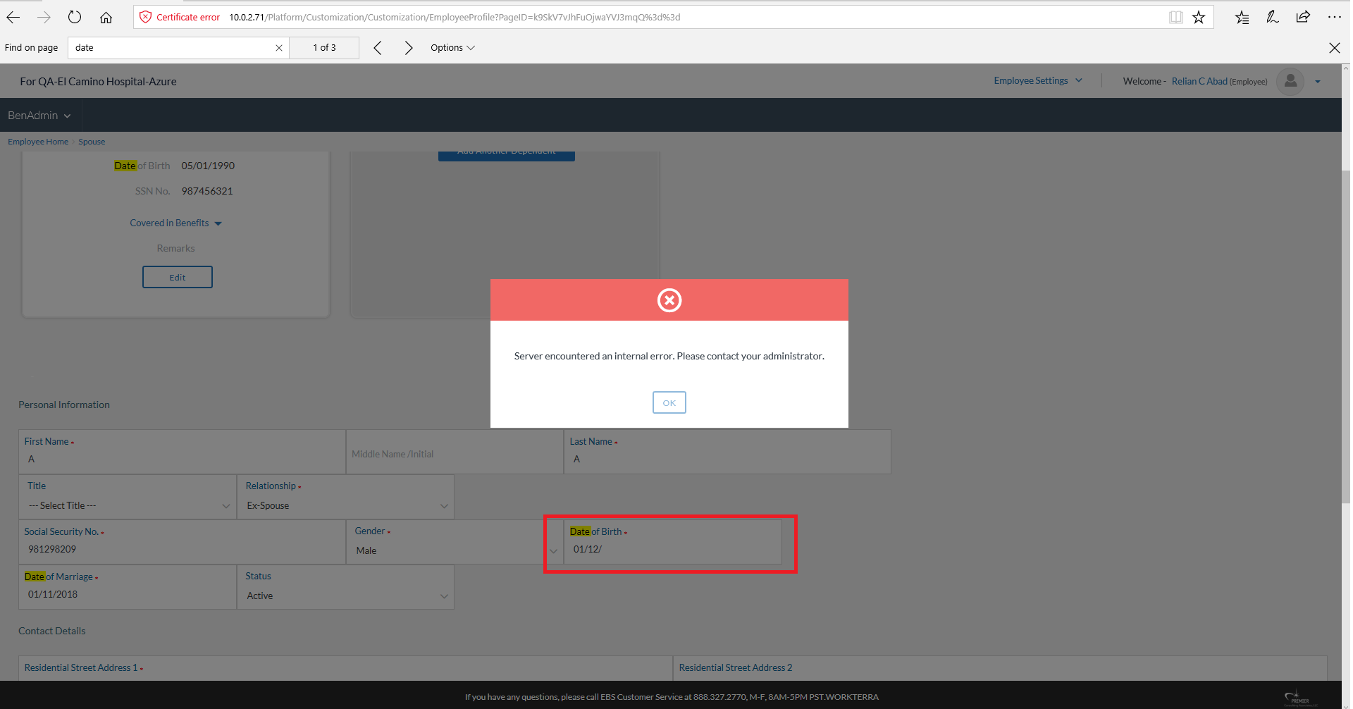 NF-5029 UI- Any company - Employee login- spouse- Validation message not shown proper for DOB field