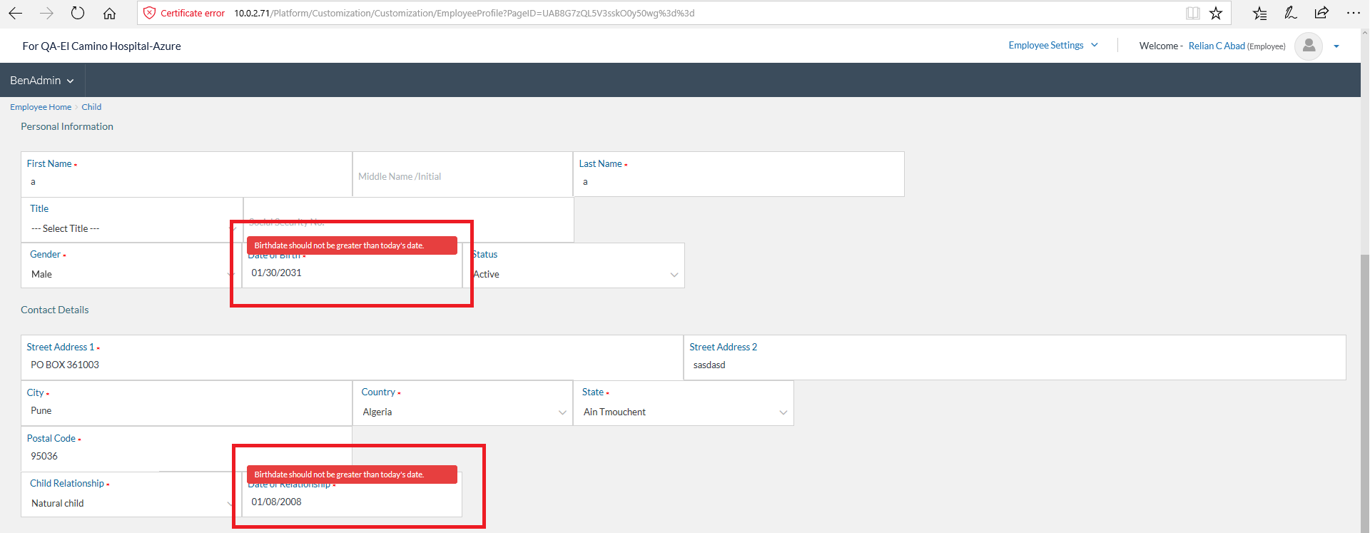 Same Validation message shown for both fields DOB and Date of relationship and date of disability