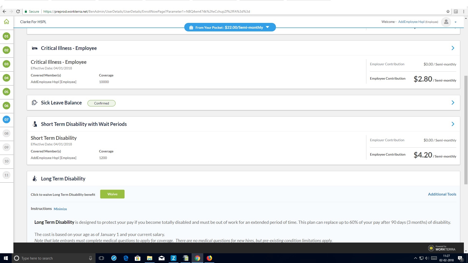 If you click "back" from the beneficiary page it brings you back to the next benefit "Short Term Disability with Wait Periods"