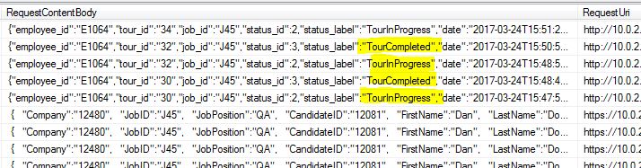 9. Connect to DB and observe RequestContentBody column under "WTAPIUtilizationLog" table.