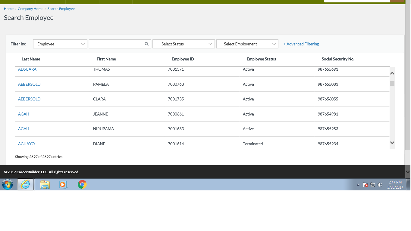 Login as partner -> select company -> Go to Core HR -> Select Manage Employee _> observe the page