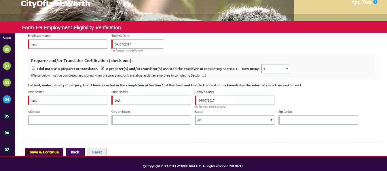 3. Click on "Save & Continue" button on I-9 form.
