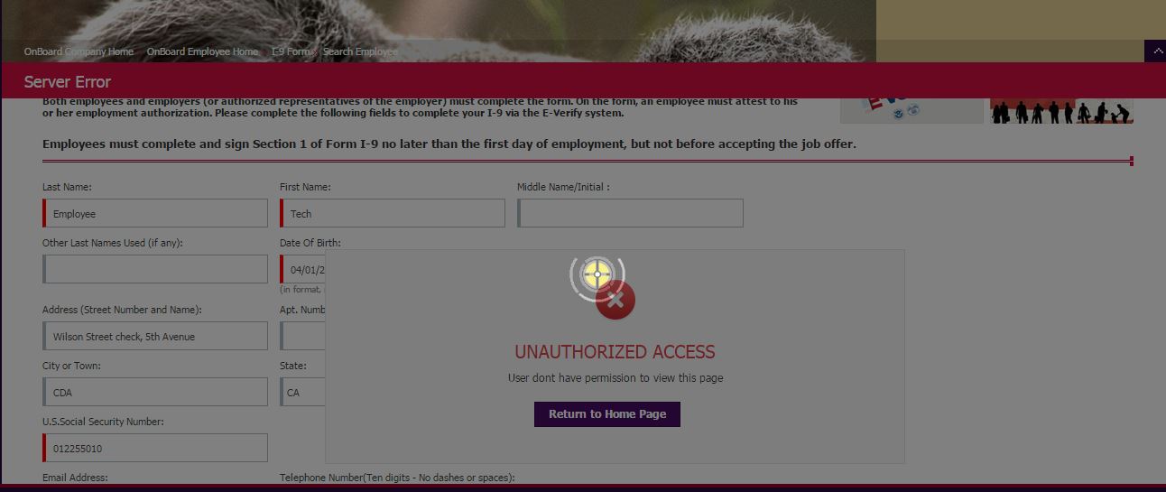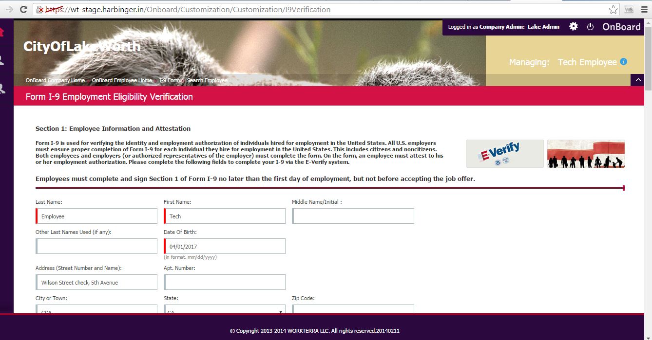 5] From Employee home page click on I-9 Form link under "Quick Link" section.