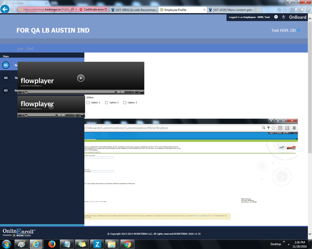 In Employee flow, if a form containing video is loaded and employee opens menu, the menu opens below the video. PFA screen shot.