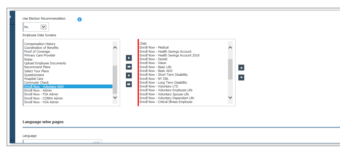 This morning they started receiving complaints from their client that employees were not seeing the voluntary AD&D. When they went to the Employee Data Screens (screen shot below) the Voluntary AD&D had been removed from the workflow.