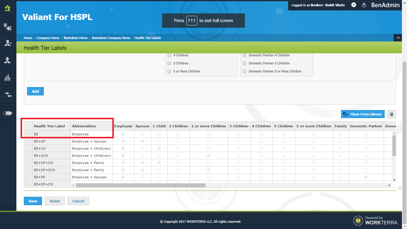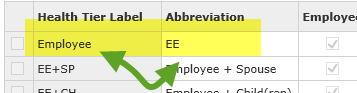 Also, we inadvertently built the EE Health tier labels opposite, could you please switch the names of the health tier label and the abbreviation for the first line of EE? I've created a screen print below to show which section I am referring to.
