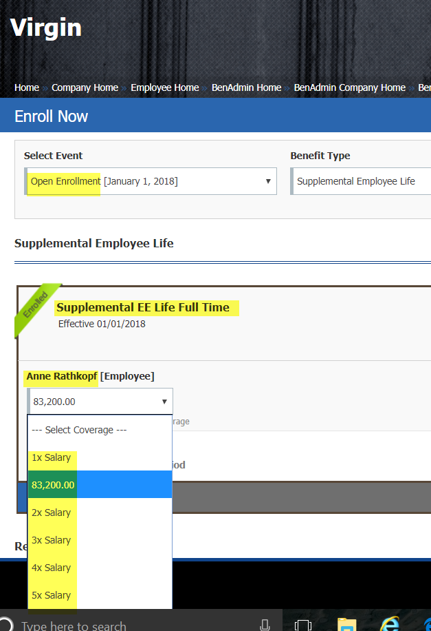 During OE client wanted to make change on Supp EE Full Time plan and Supp EE Part Time plan, cost and coverage tab. Allow salary display to No.