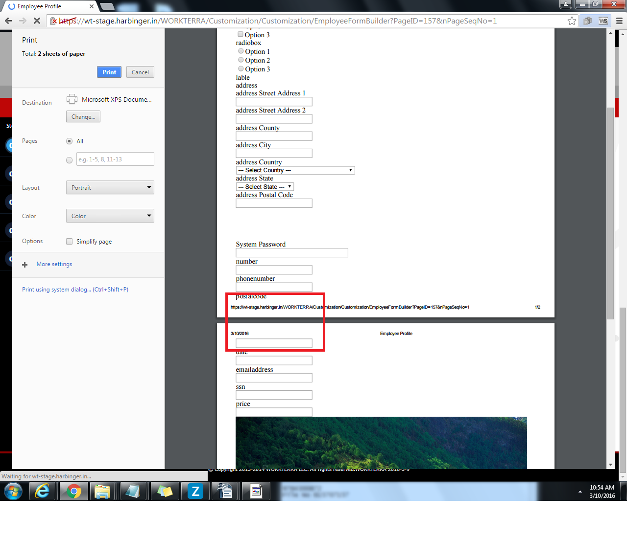 If a form with two page content is printed, label and content is displayed on different pages. Label on first page and content on second. PFA screen shot.