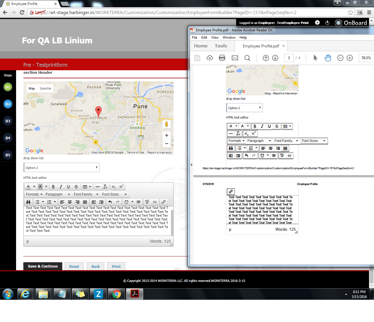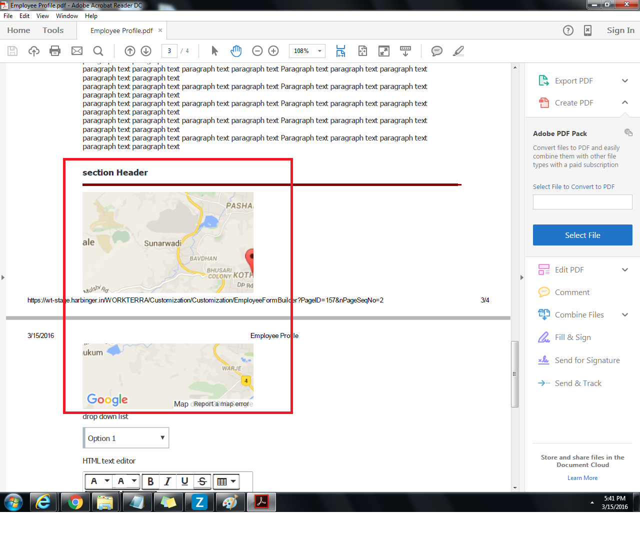 In addition to this, elements like Map, HTML text editor etc are displayed partially on two pages if place at bottom of page. PFA screen shot. Here, it is expected that, no element should be split across pages.
