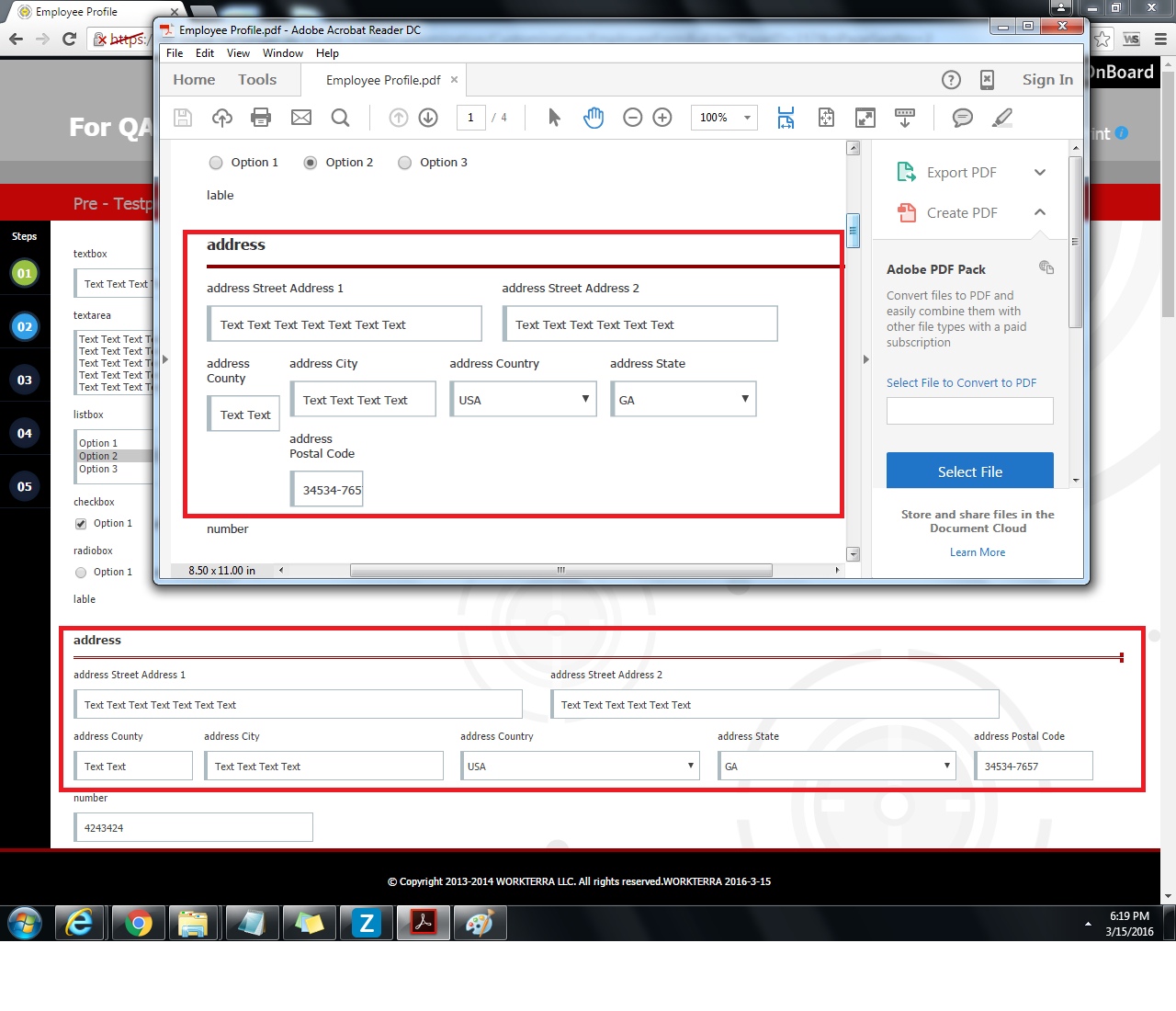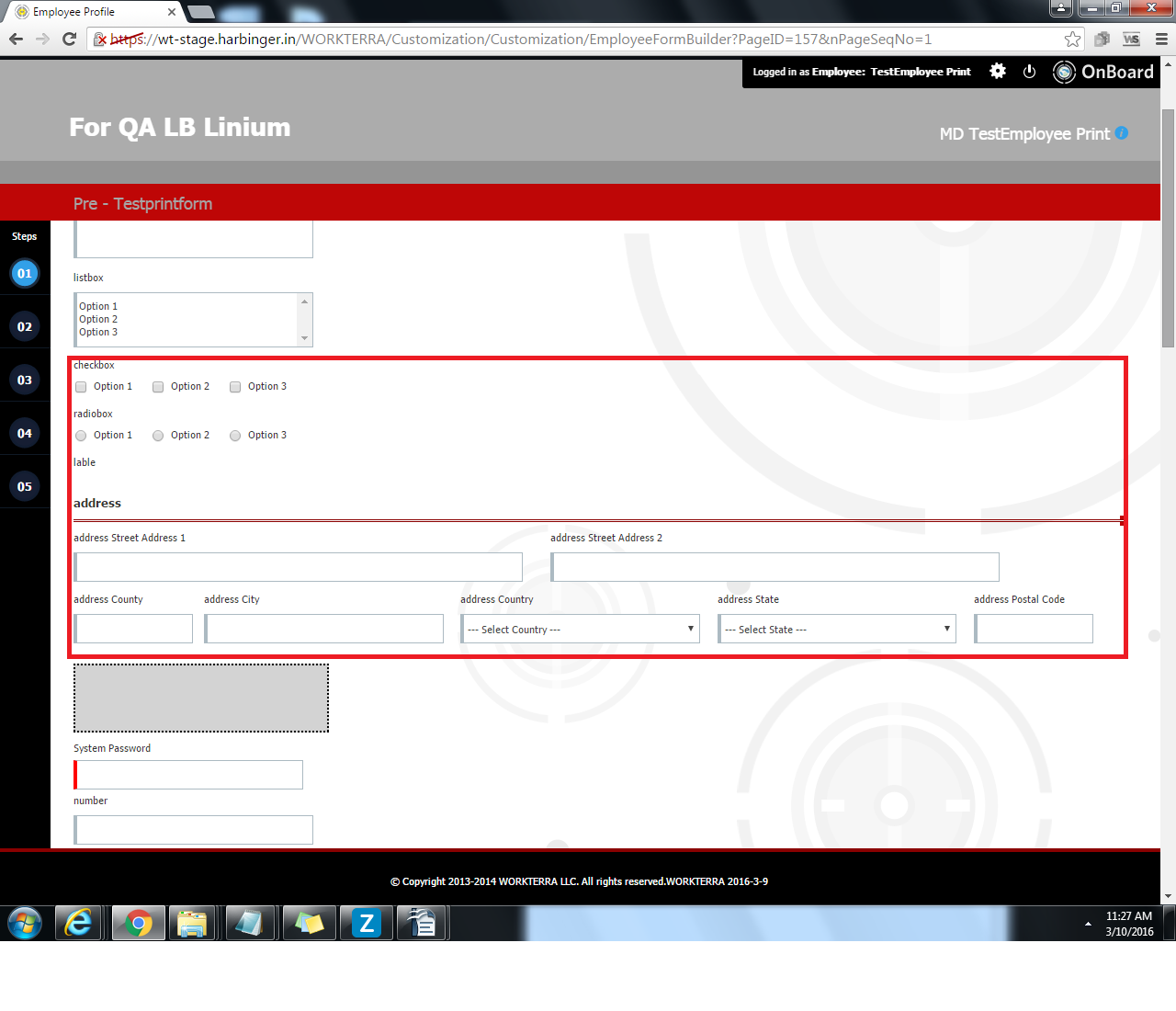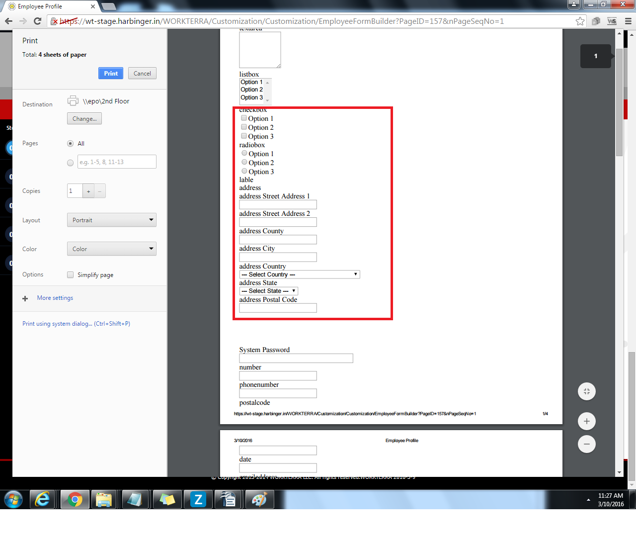 Elements like check-box, radio-box, address are not displayed in print output as those are placed in form. PFA screen shot.