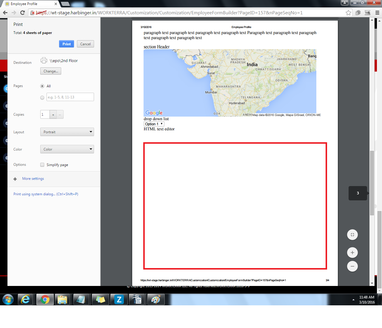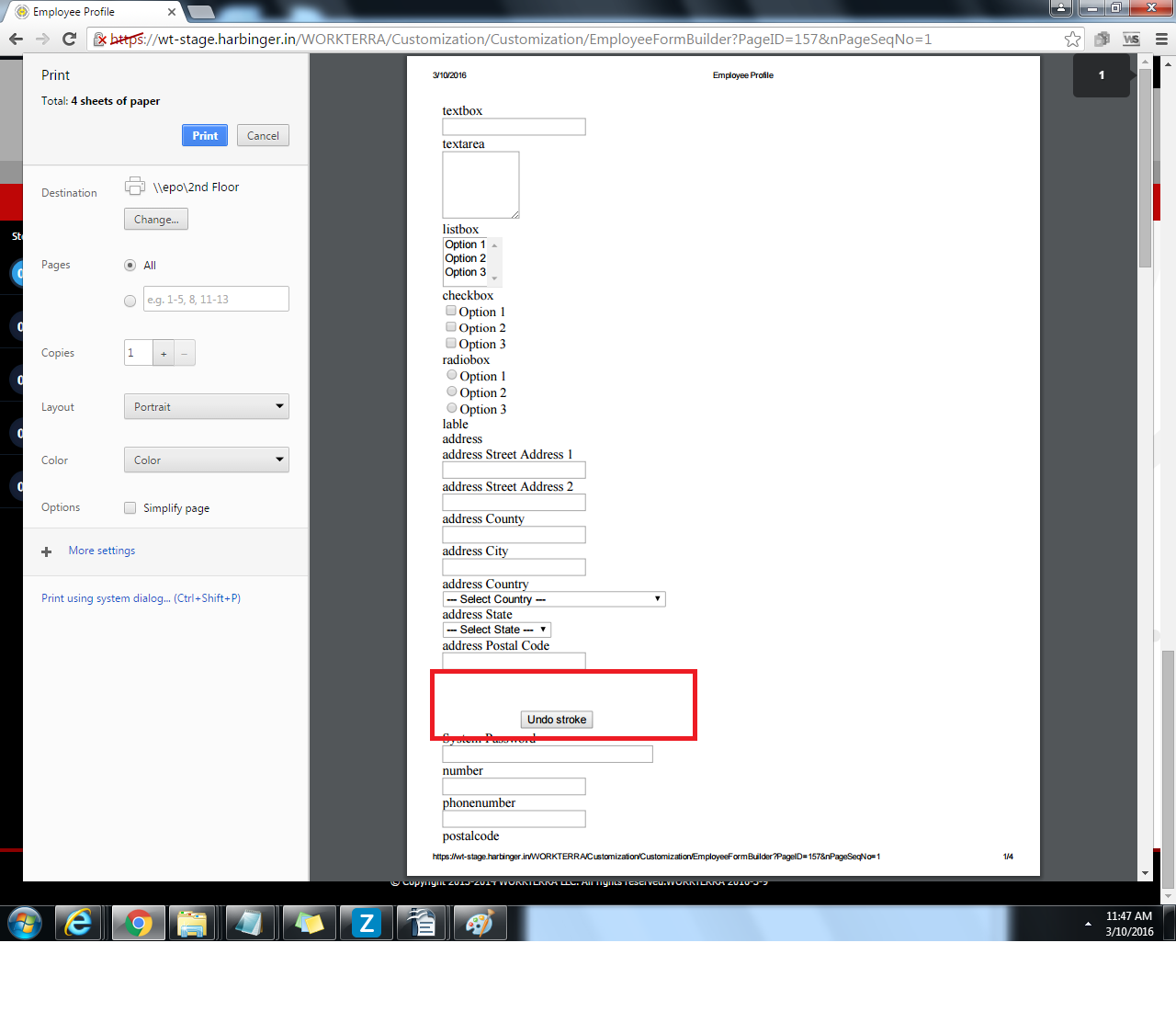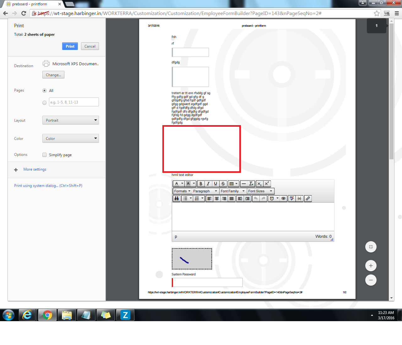 Here, Signature Component, Video and HTML text editor are not visible in print out put.