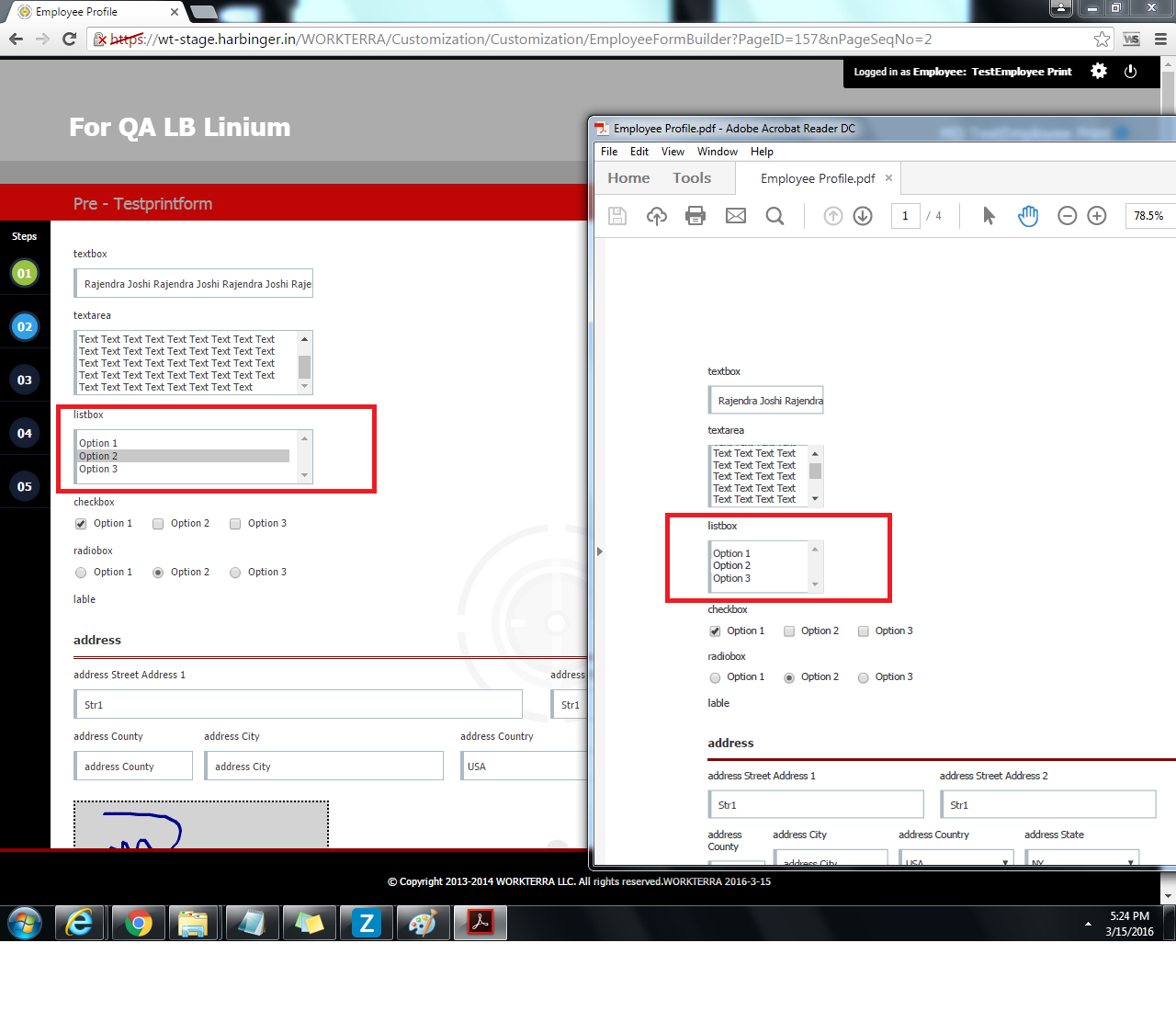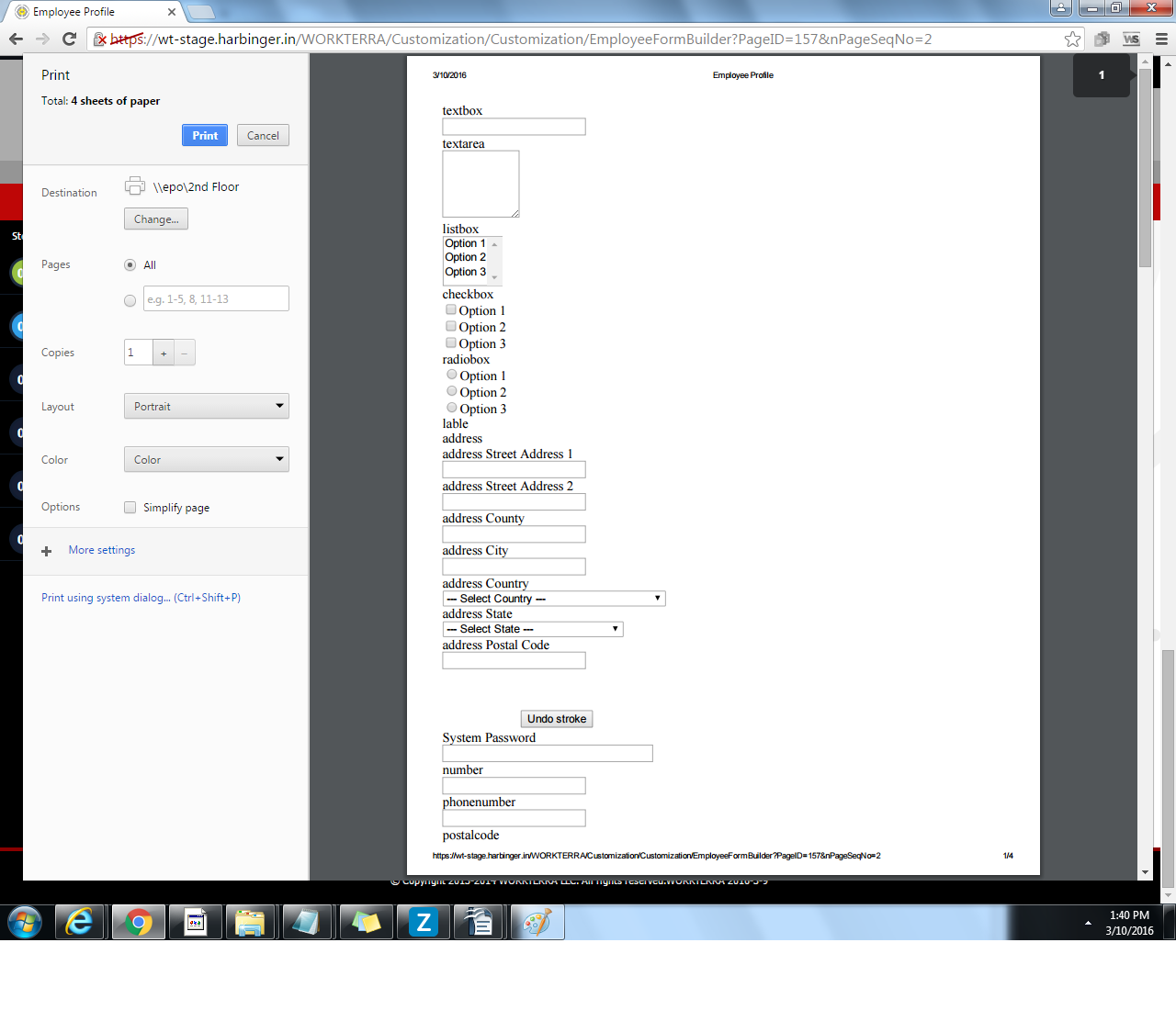 Ability to Print Form : User inputs and selection does not reflect in print output.