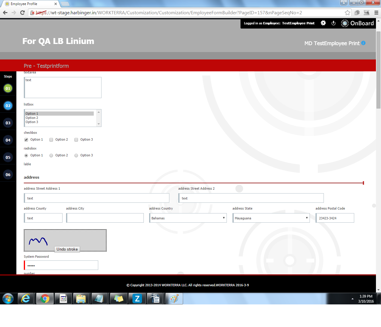 User inputs such as text, number, signature and any selection of check-box, radio-box, combo-box, list-box etc. should also be printed. At present, user input is not reflecting in print output.