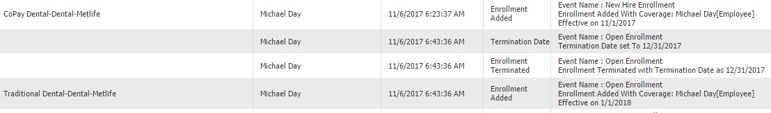 EE Michael Day has a medical and Dental OE record went across on the payroll file. Some of his records are New Hire enrollment and Some are Open Enrollment. Looking at the history he was a new hire benefits eff 112/1 but made a change to the Dental in the OE Window. Why were those records fetched, the client should not be getting those yet. Please advise