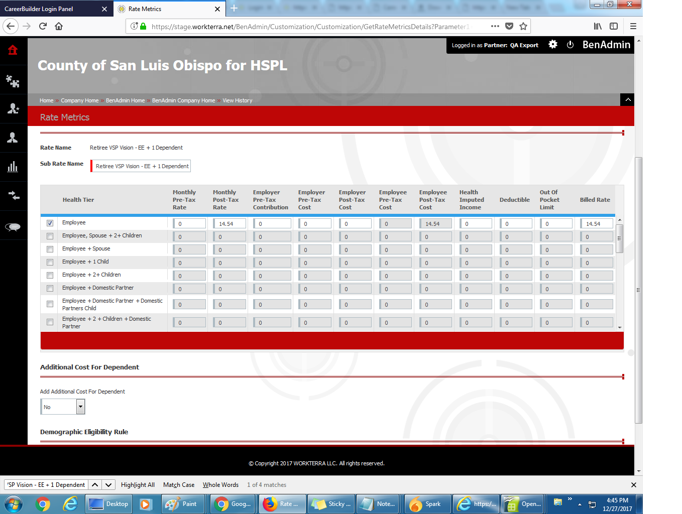I have been able to go into the system, waive the coverage, then re-enroll in the EE + 1 Dependent plan and the rate appears again.