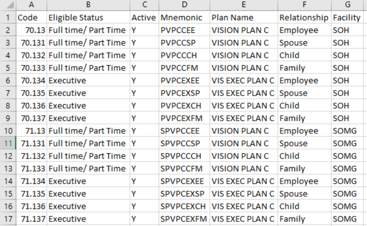 We have 241 rows missing deduction codes on the file we ran internally today. I need the facility to provide the Vision Plan C - Premium Plan deduction codes, however, can you check if there's anything else missing besides the codes for this plan?