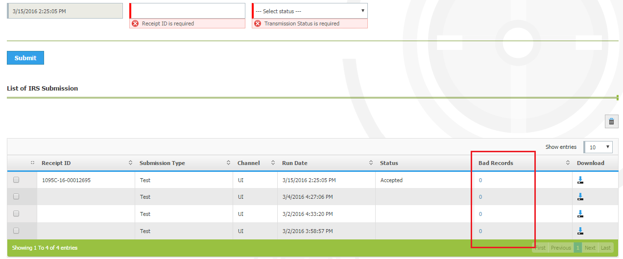 ACA - Bad records column shows zero and it has hyper link
