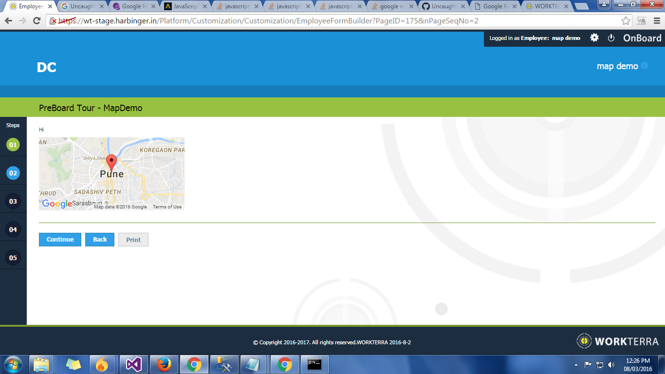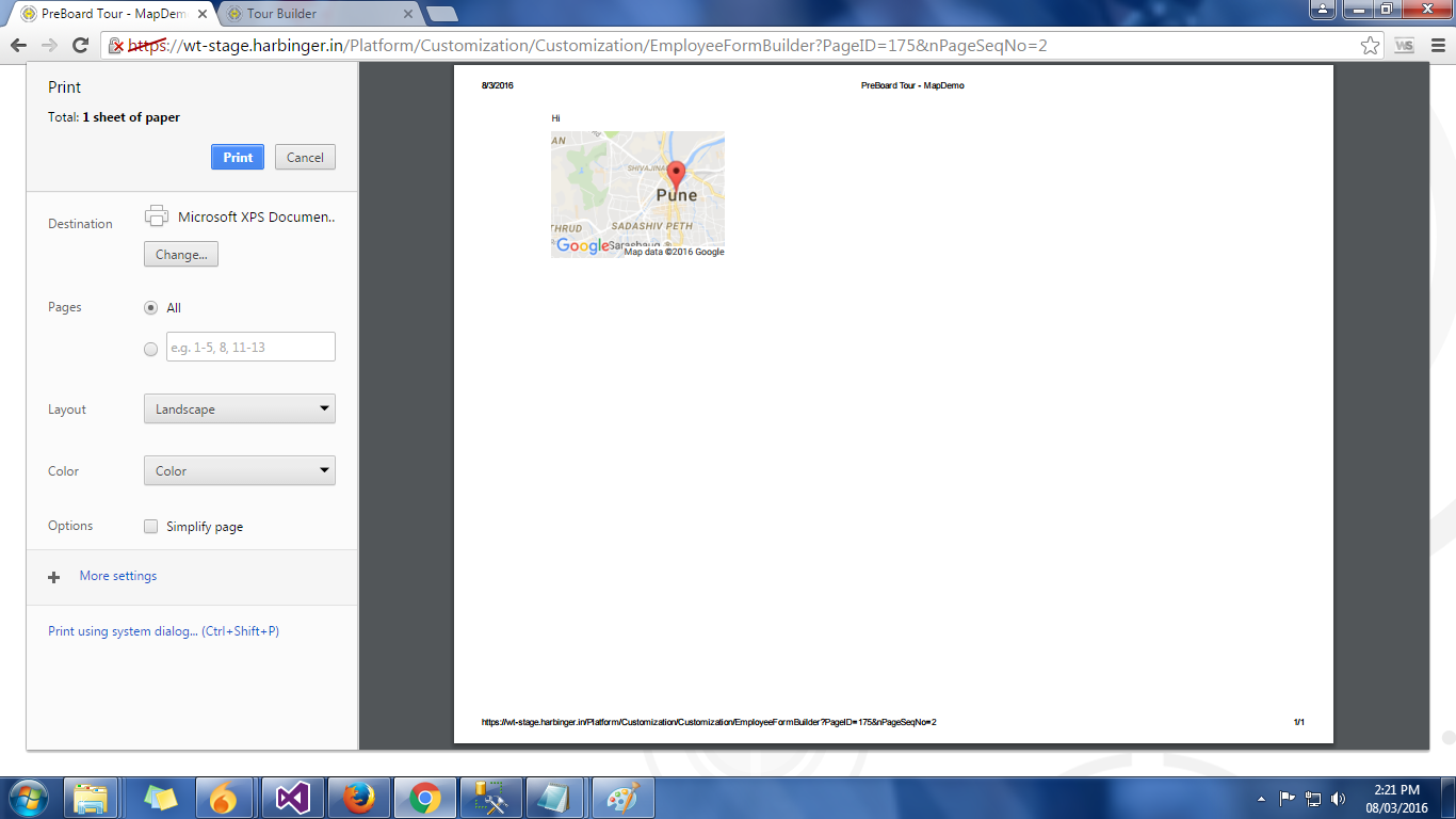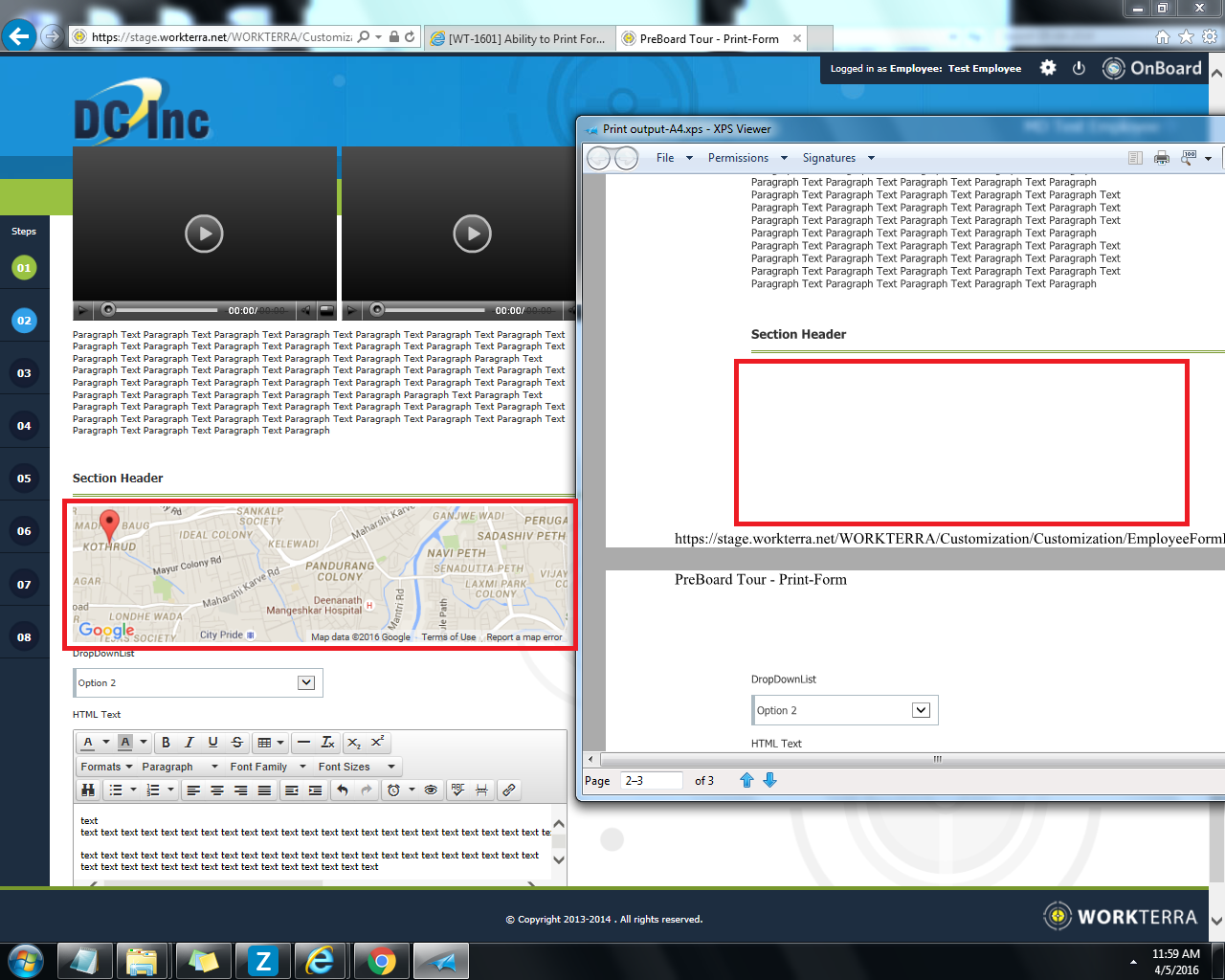 While printing the form in employee pre-board tour, with Paper Size settings as A3, the maps component is not visible in print output. PFA screen shot