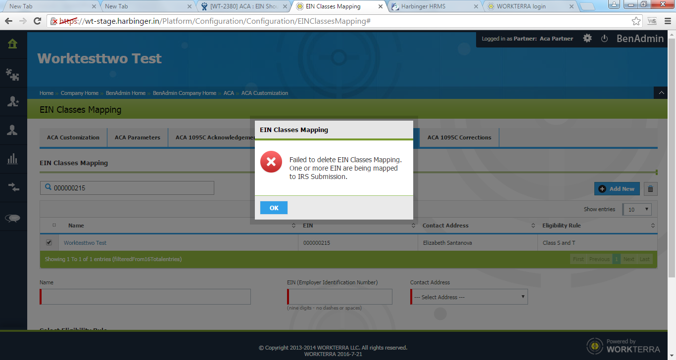 WT-2380 ACA : EIN Should not be deleted if its in use.