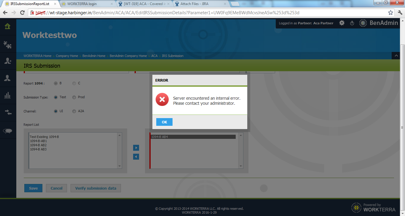 ErrorSource : ControllerAppTier.SaveAndGetData->BenAdminControllerAppTier.SaveAndGetData->ACAIRSSubmission.SaveAndGetData->IRSACAUserInterfaceHeaderMessage.WriteXML->